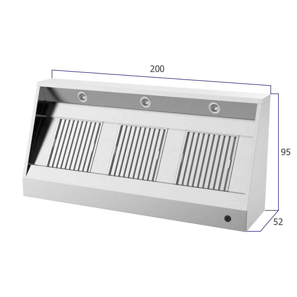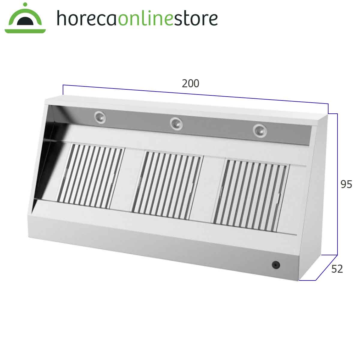 HCB Afzuigkap – schuin model – met motor – 200 cm – 230V – RVS