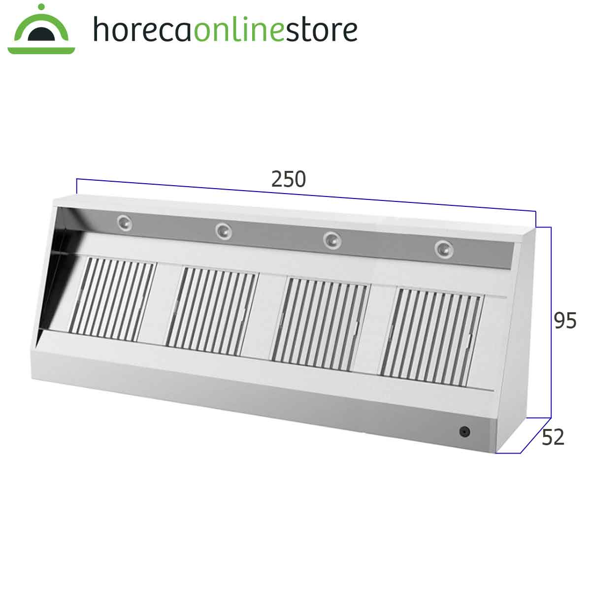 HCB Afzuigkap – schuin model – met motor – 250 cm – 230V – RVS