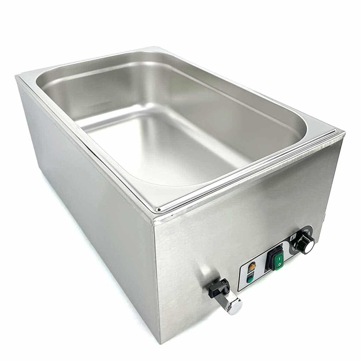 De Bain Marie wordt geleverd met een handige aftapkraan, waardoor het gemakkelijk is om overtollig water af te voeren en het apparaat schoon te houden. De aftapkraan is geplaatst aan de voorkant, waardoor het gemakkelijk is om de afvoer te bereiken en te legen.