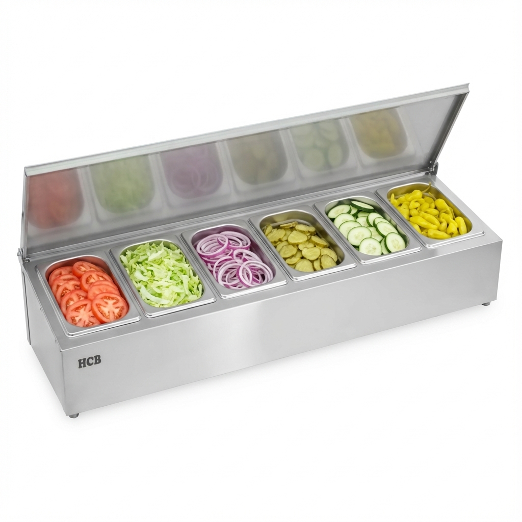 De bakhouder is ideaal voor het bewaren van dressings, sauzen en andere kleine items die u georganiseerd wilt houden. Het is een handige en essentiële aanvulling voor elk professioneel restaurant, hotel of café.