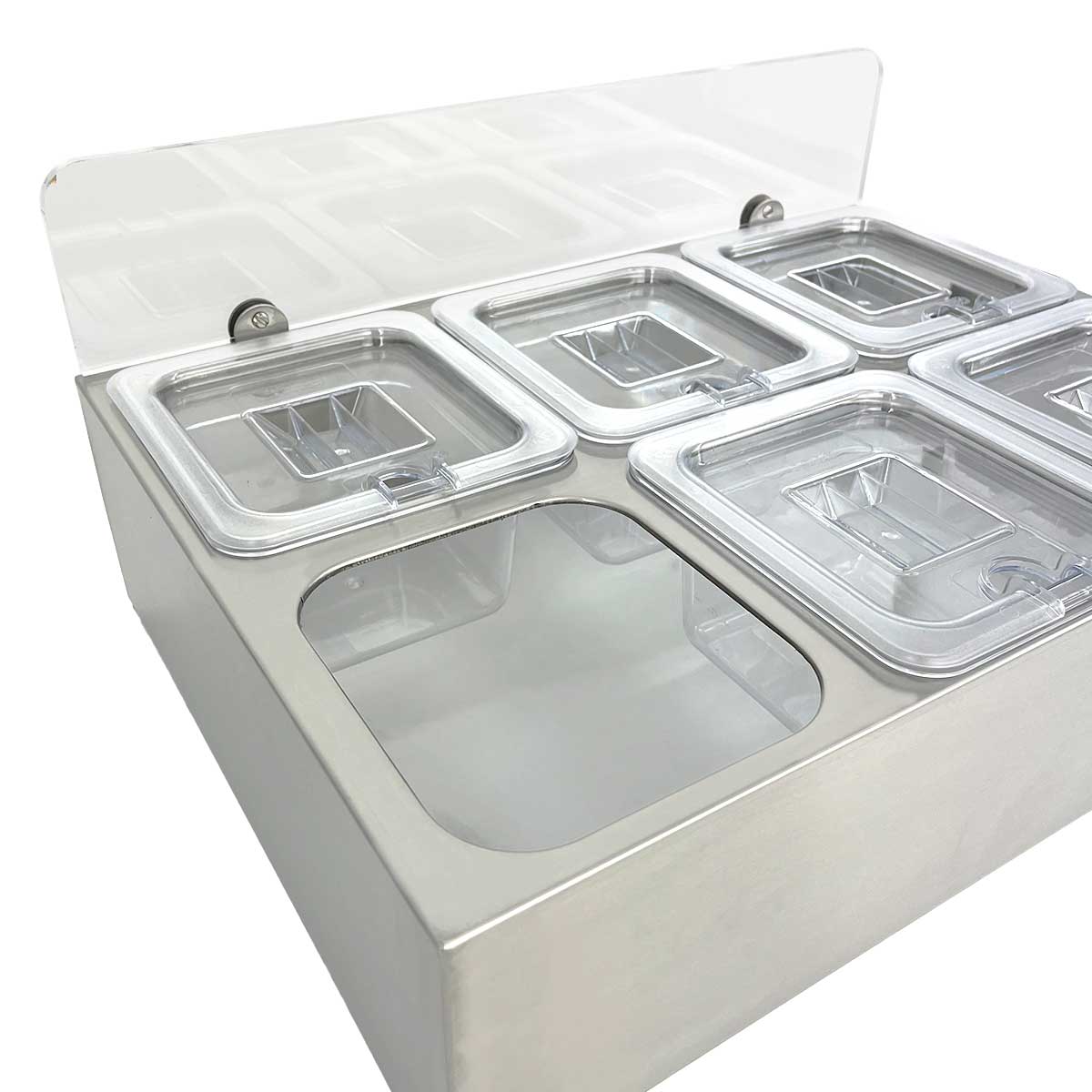 De bakhouder is ideaal voor het bewaren van dressings, sauzen en andere kleine items die u georganiseerd wilt houden. Het is een handige en essentiële aanvulling voor elk professioneel restaurant, hotel of café.