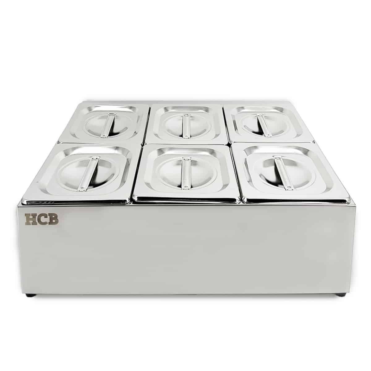 De bakhouder is gemaakt van duurzaam roestvrij staal en biedt voldoende ruimte om zes 1/6 gastronorm bakken te plaatsen, zodat u uw producten op een georganiseerde manier kunt opslaan.