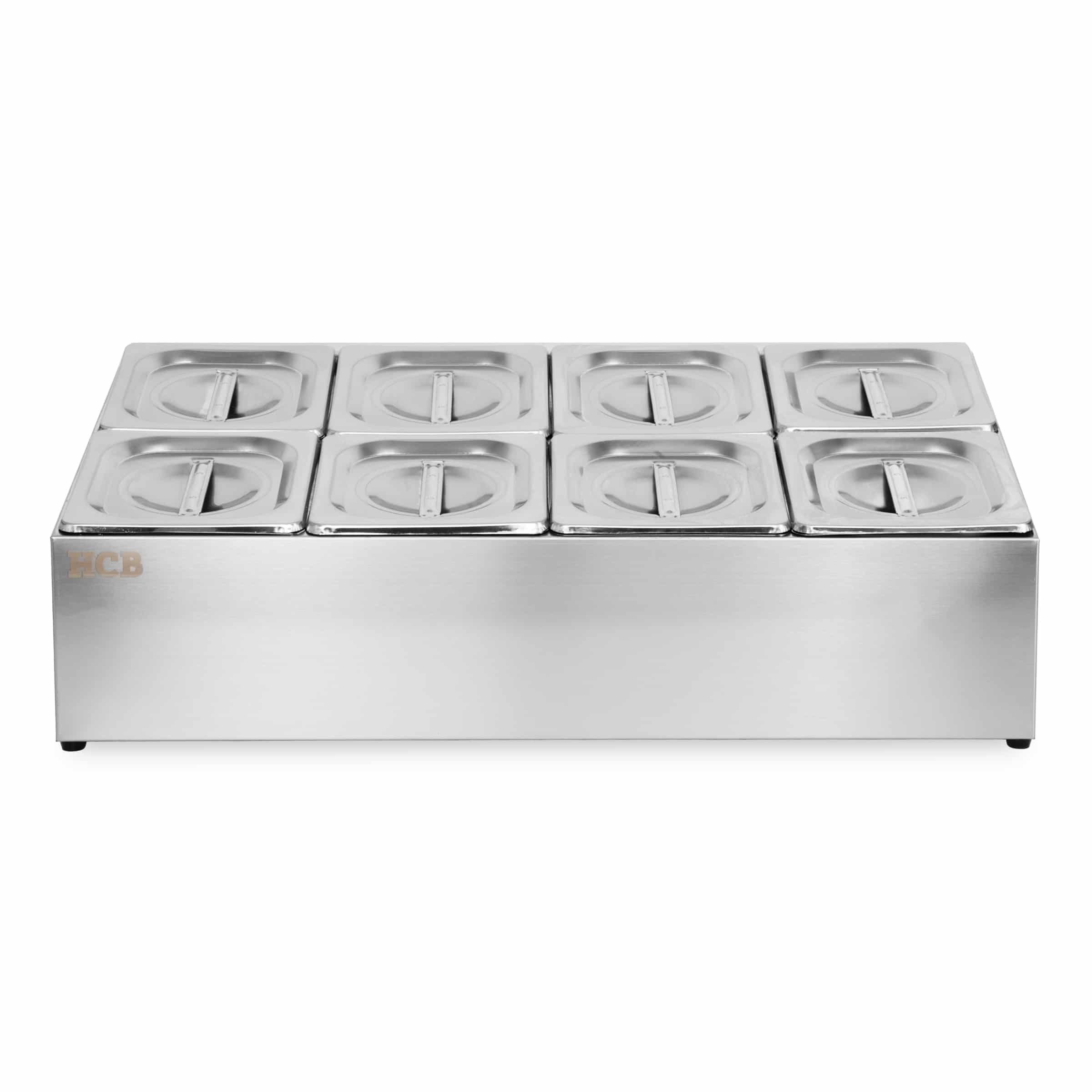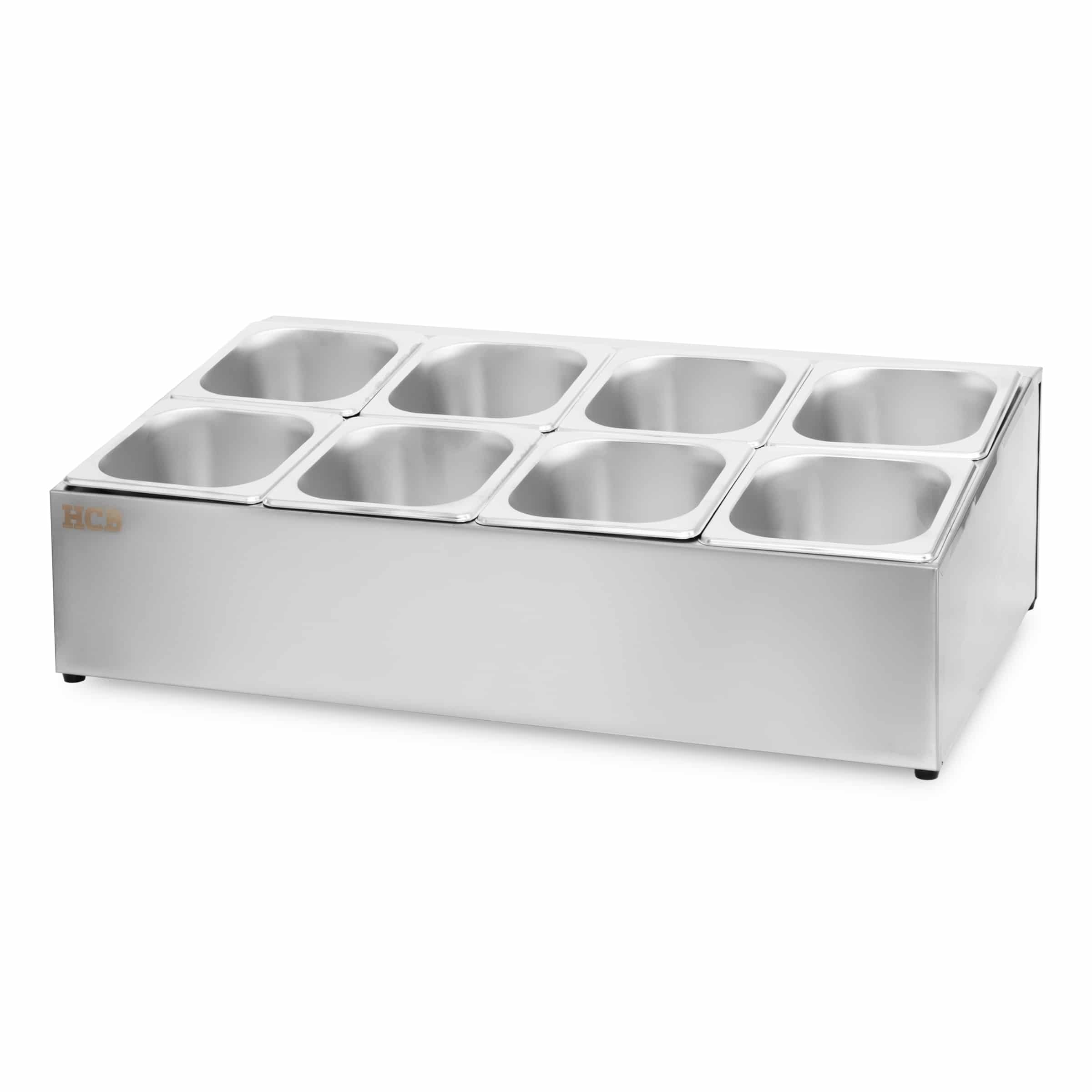 De bakhouder is gemaakt van duurzaam roestvrij staal en biedt voldoende ruimte om acht 1/6 gastronorm bakken te plaatsen, zodat u uw producten op een georganiseerde manier kunt opslaan.