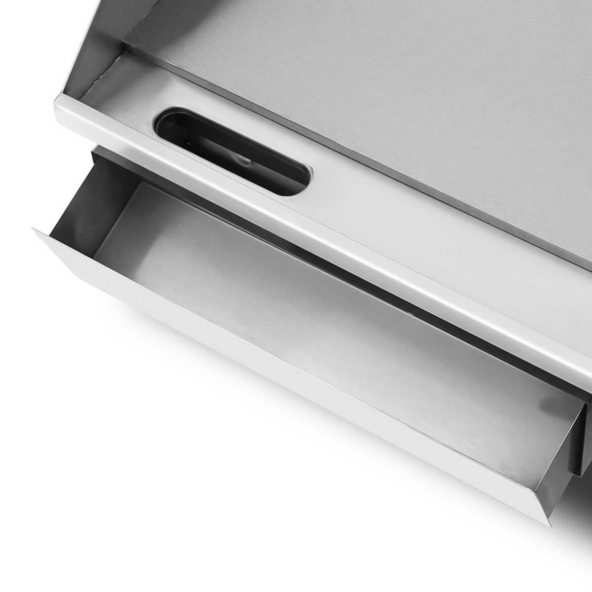 Dankzij de krachtige vermogen warmt de bakplaat snel op en blijft hij constant op de juiste temperatuur, zodat u perfecte resultaten kunt behalen. De RVS constructie maakt de bakplaat duurzaam en gemakkelijk schoon te maken.