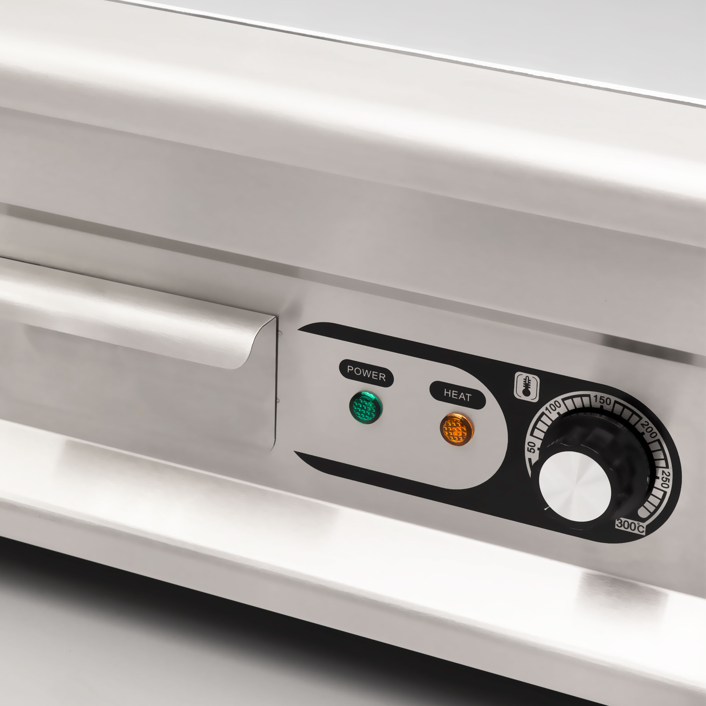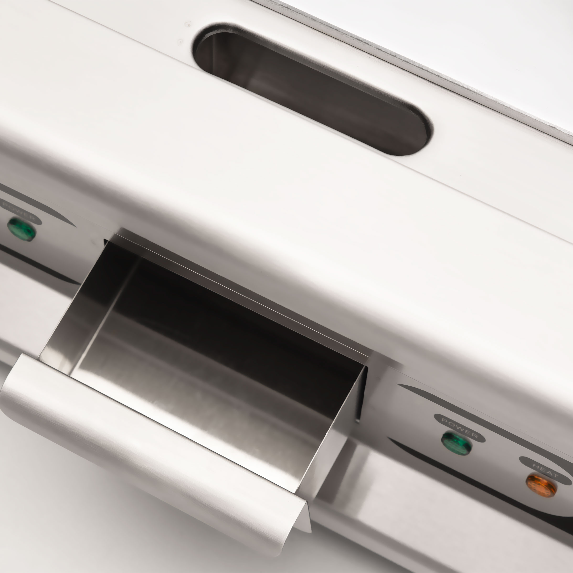Dankzij de RVS constructie is de bakplaat duurzaam en eenvoudig schoon te maken. De twee afzonderlijk instelbare warmtezones geven u de controle over de bereiding van uw gerechten. Zo kunt u uw gerechten perfect bakken, grillen of braden, precies zoals u het wilt.