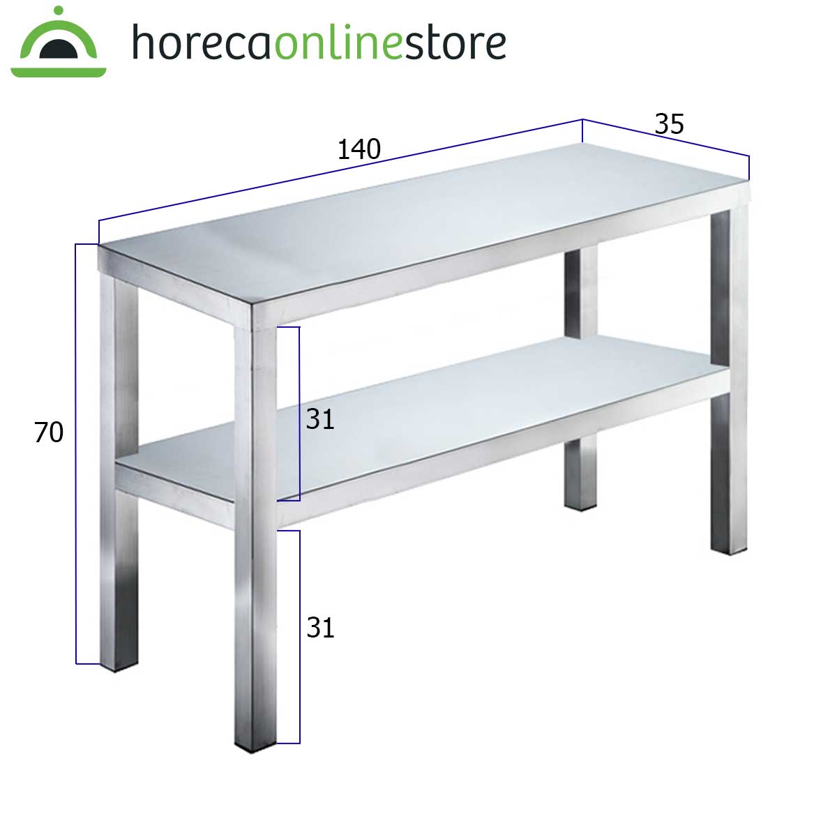 HCB Basic-line Dubbele etagère brug – 140 x 35 x 70 cm – RVS