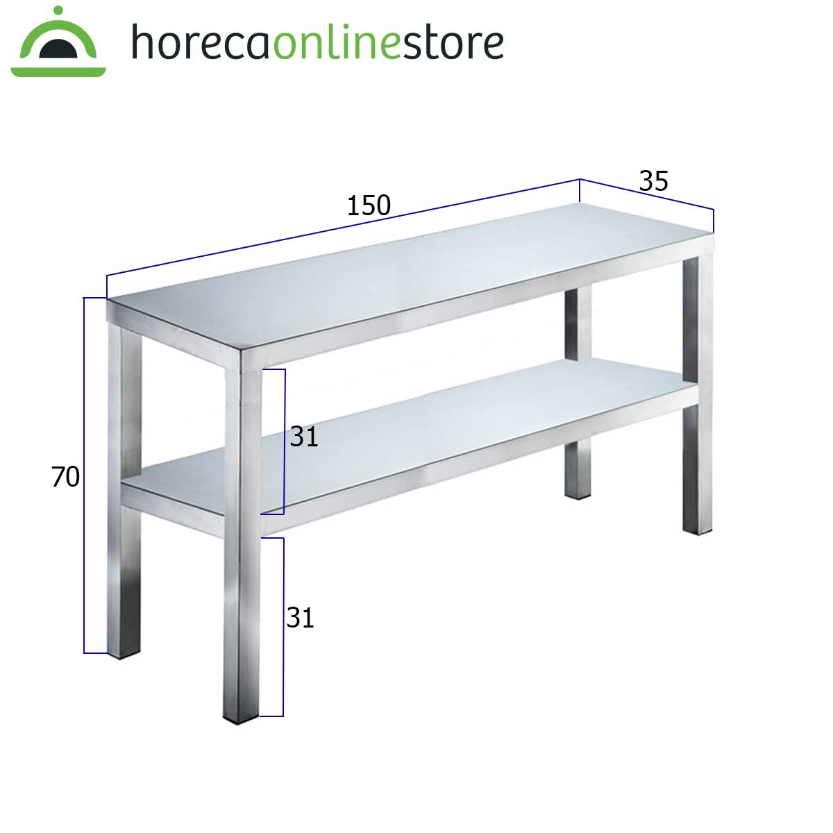 HCB Basic-line Dubbele etagère brug – 150 x 35 x 70 cm – RVS