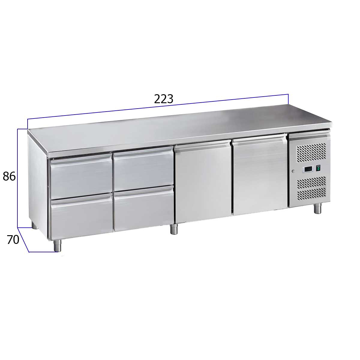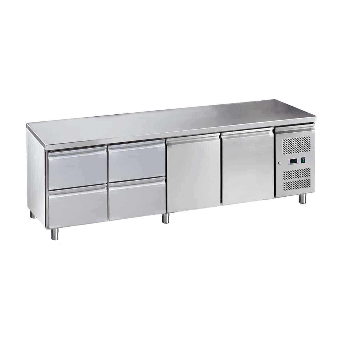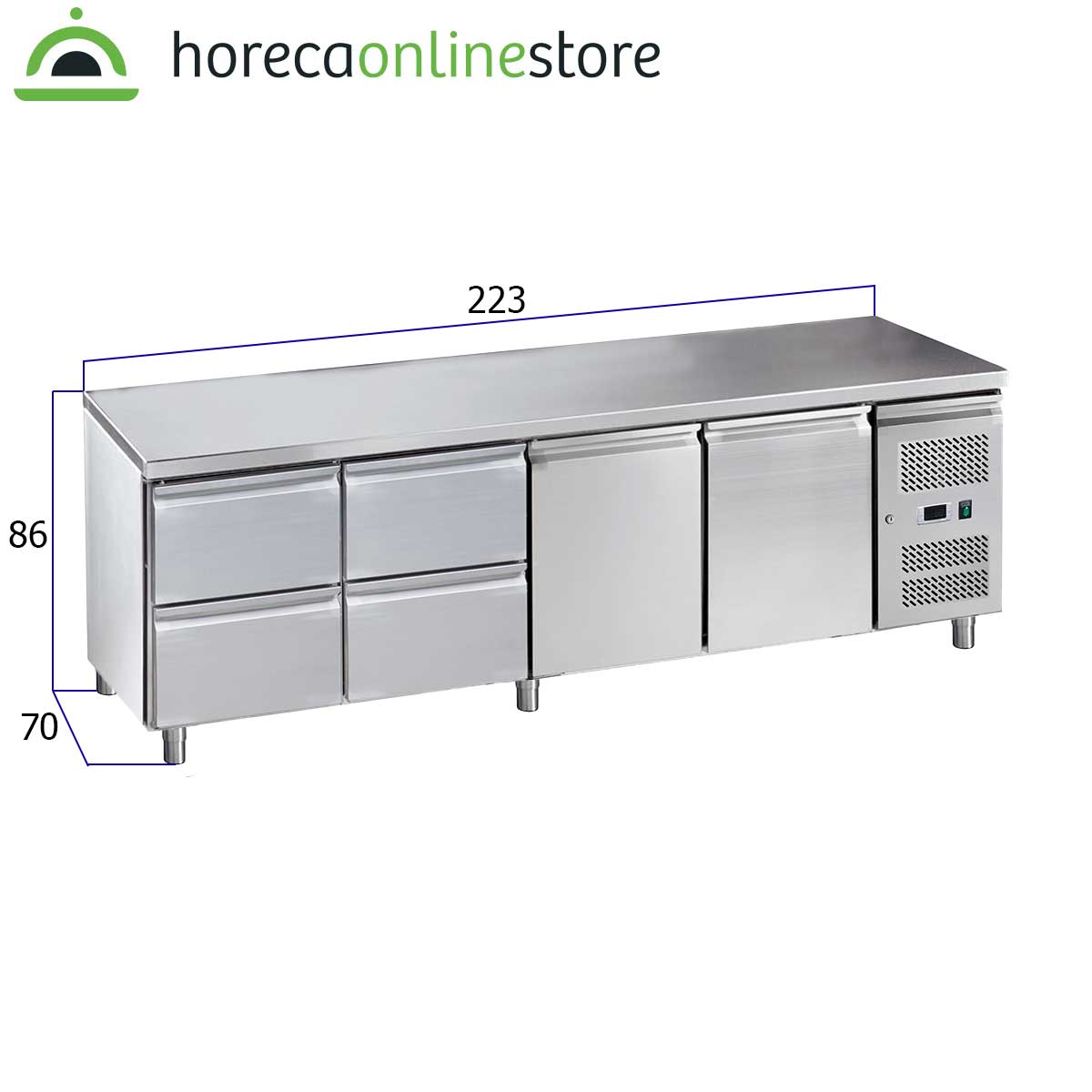 HCB Basic-line Koelwerkbank – 4 lades – 2 deuren – 223 cm – 230V – RVS