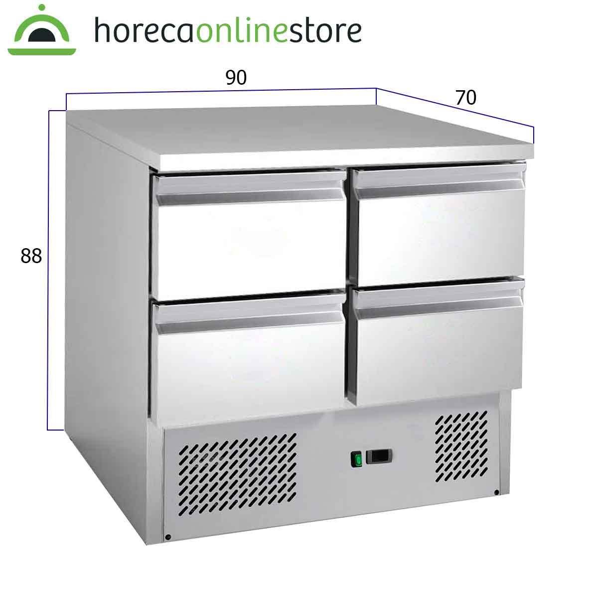 HCB Basic-line Koelwerkbank – 4 lades – 90 cm – 230V – RVS