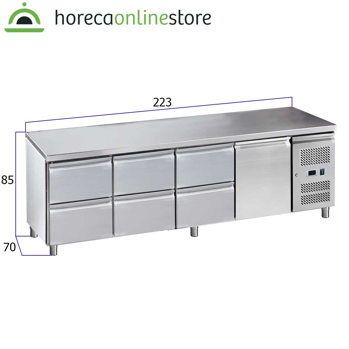 HCB Basic-line Koelwerkbank – 6 lades – 1 deur – 223 cm – 230V – RVS