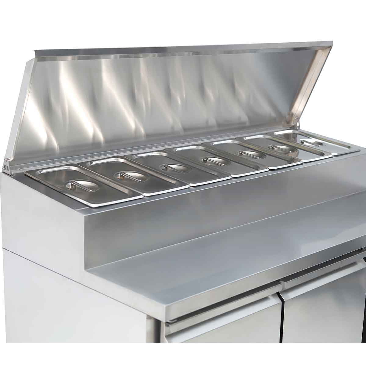 Met de mogelijkheid om 7 stuks 1/3 gastronorm bakken te koelen en een RVS afsluitbare kap, kunt u al uw ingrediënten en producten perfect opslaan en gemakkelijk terugvinden.