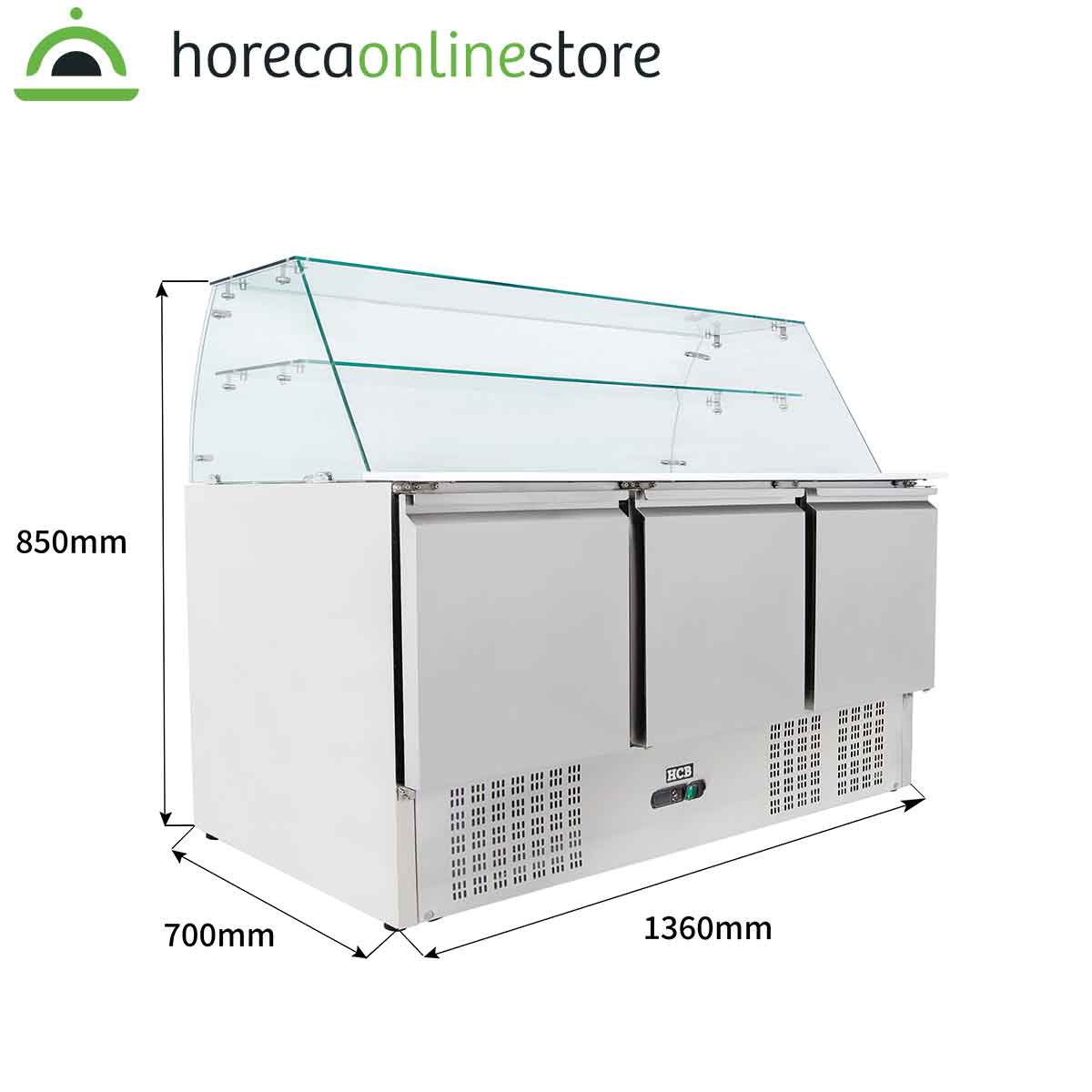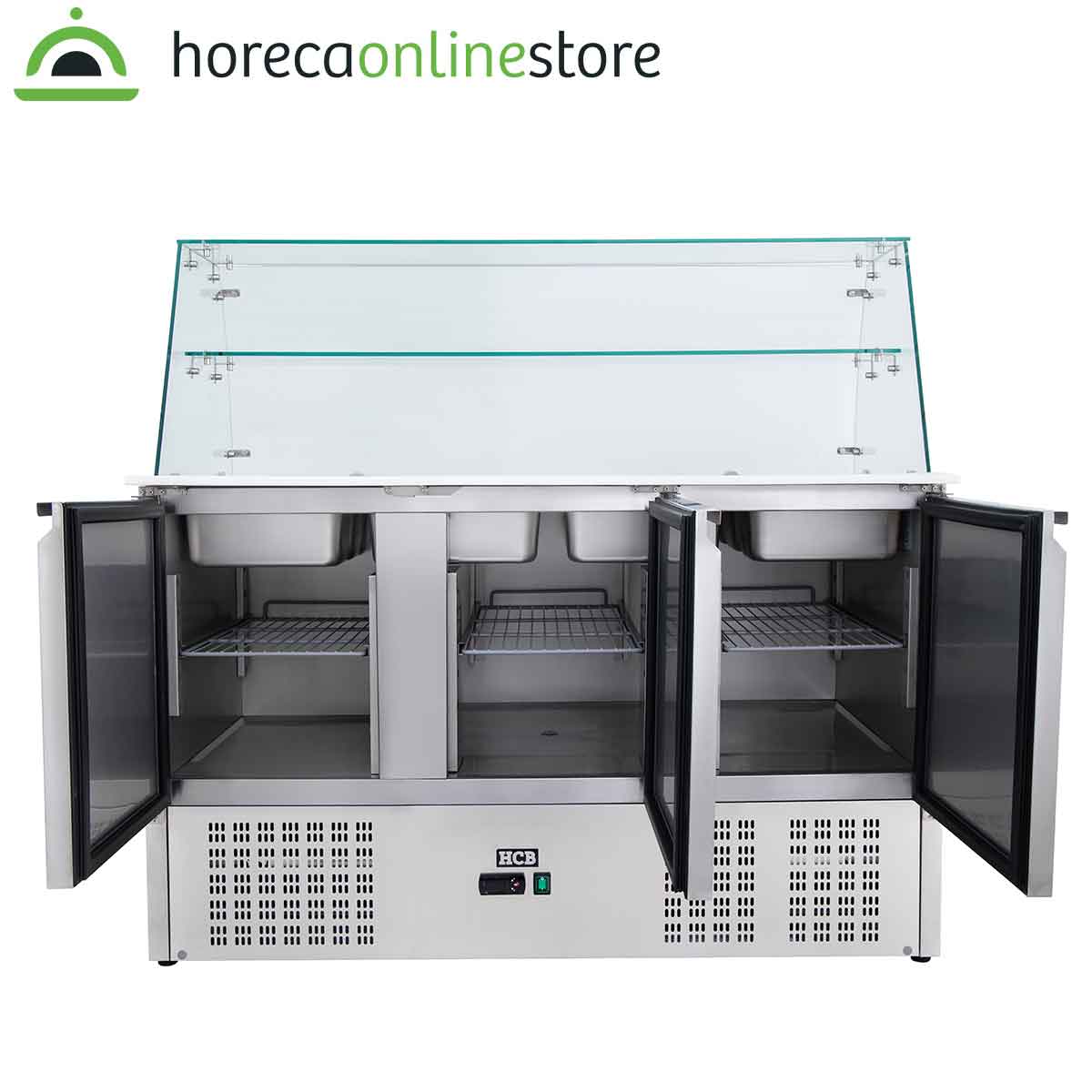 HCB Basic-line Saladette koelwerkbank – 3 deuren – 137 cm – 230V – RVS