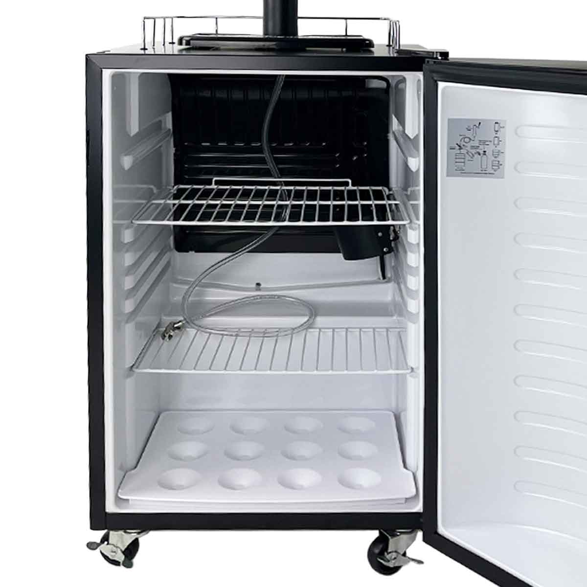 Stel de perfecte temperatuur in voor je drankjes via de thermostaat, variërend van 0 tot +10 graden Celsius. De bierkoeler is ontworpen met mobiliteit in gedachten, dankzij de soepel rollende wielen, zodat je hem gemakkelijk kunt verplaatsen naar elke gewenste locatie, of het nu in de achtertuin, op het terras of bij een feestzaal is.