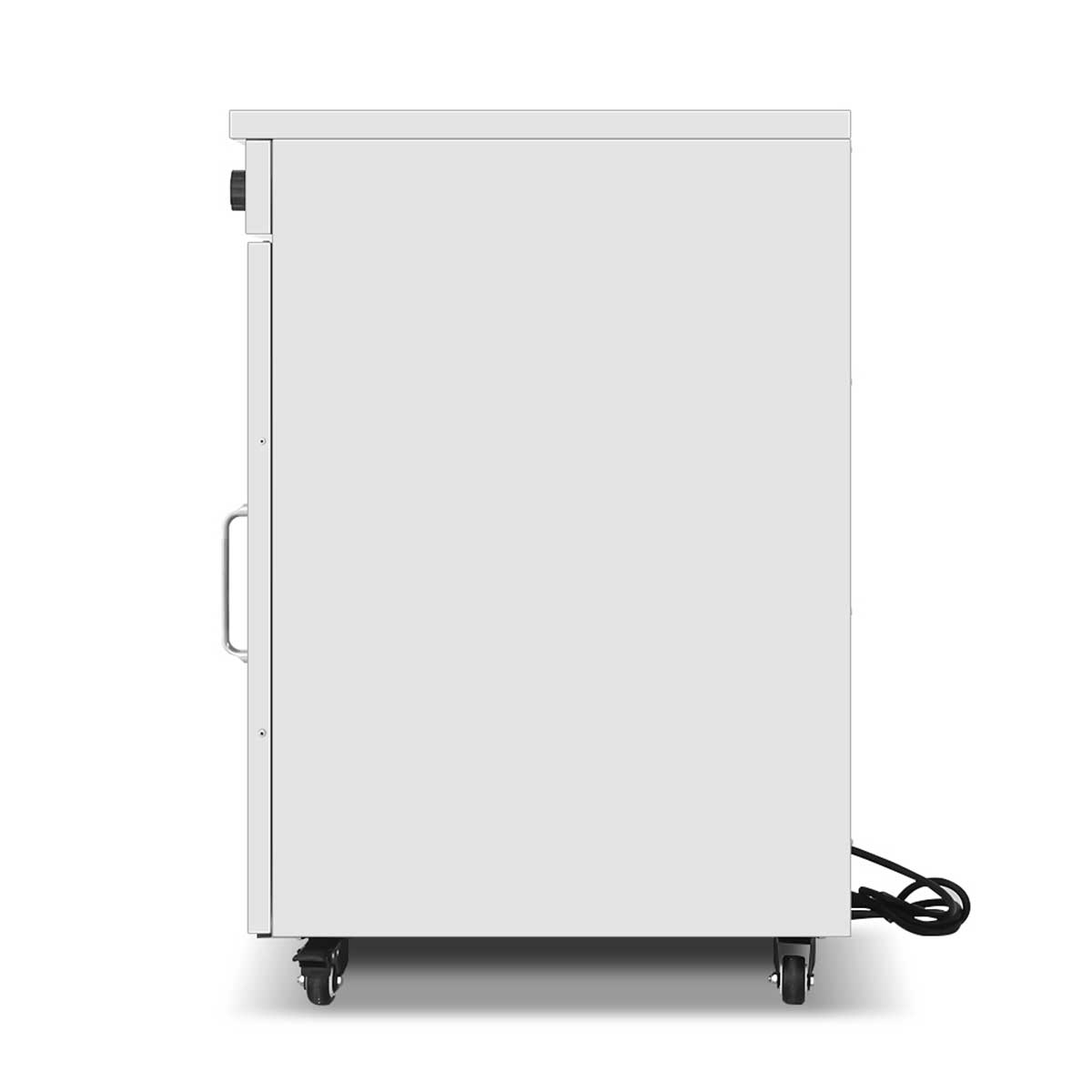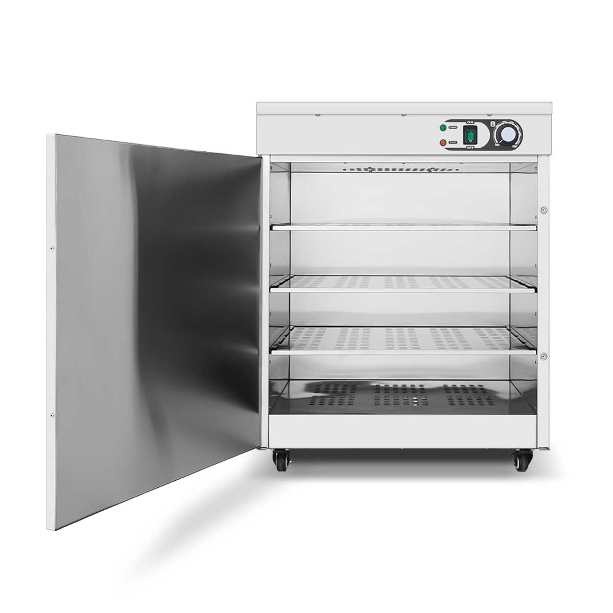 Het apparaat is verrijdbaar, waardoor je het gemakkelijk kunt verplaatsen en op verschillende locaties kunt gebruiken. De bordenwarmer heeft een robuuste constructie en is gemaakt van duurzame materialen die bestand zijn tegen dagelijks gebruik en slijtage.
