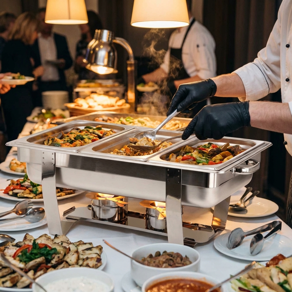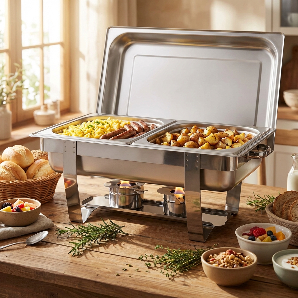 Een chafing dish is een essentieel item voor elke cateraar, hotelier of iedereen die grote hoeveelheden eten tegelijk warm moet houden. Door het verfijnde ontwerp en professionele uitstraling is de chafing dish onmisbaar op elk buffet.