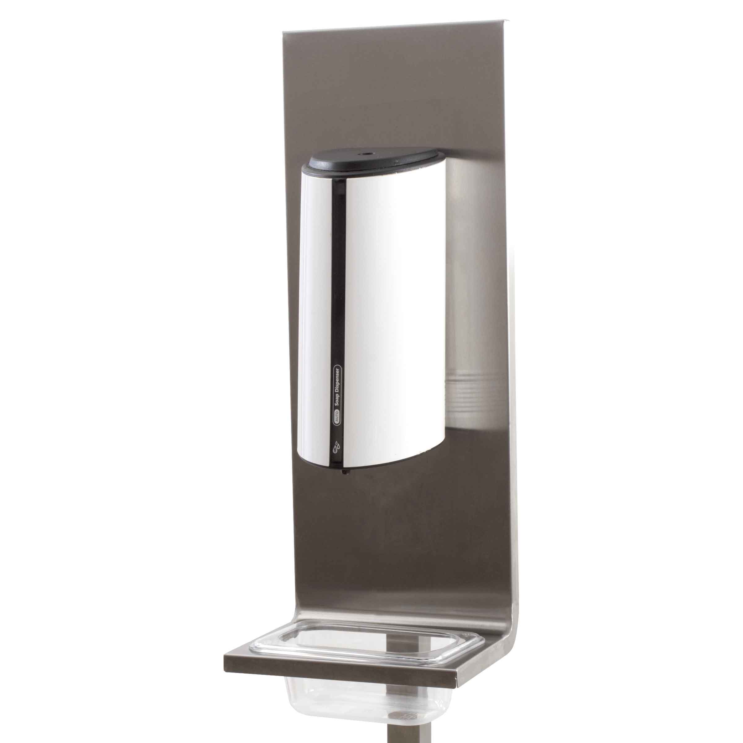 Contactloze Technologie: Onze desinfectiezuil is uitgerust met een geavanceerde sensor-gestuurde dispenser, waardoor handdesinfectie snel en hygiënisch wordt. Geen gedoe met drukknoppen of hendels – plaats eenvoudig je hand onder de dispenser en ontvang de juiste hoeveelheid desinfectiemiddel.