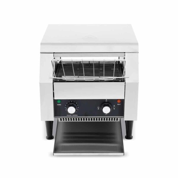 het apparaat is gemaakt van duurzame materialen en is ontworpen voor intensief gebruik. het is gebouwd om jarenlang mee te gaan en kan probleemloos worden gebruikt in drukke horecaomgevingen. de transportband is gemaakt van hoogwaardig roestvrijstaal en gaat dus ook lang mee.