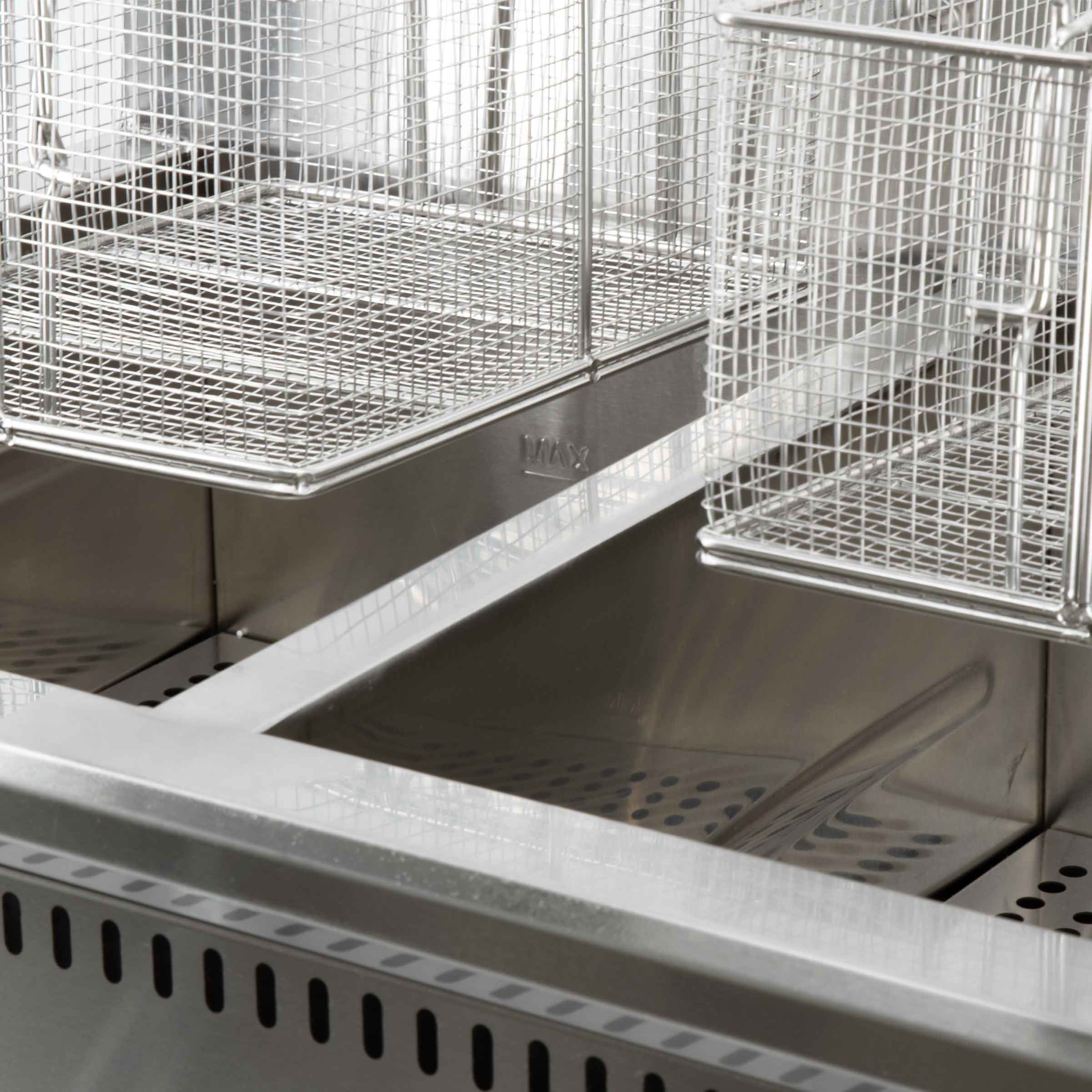 Deze friteuse met een inhoud van 2 x 21 liter is uitermate geschikt voor de professionele keuken. Ideaal geschikt voor het frituren van grotere hoeveelheden in een keer. De frietpan is perfect geschikt om verschillende soorten voedsel te frituren zoals verse frites, groente, snacks.