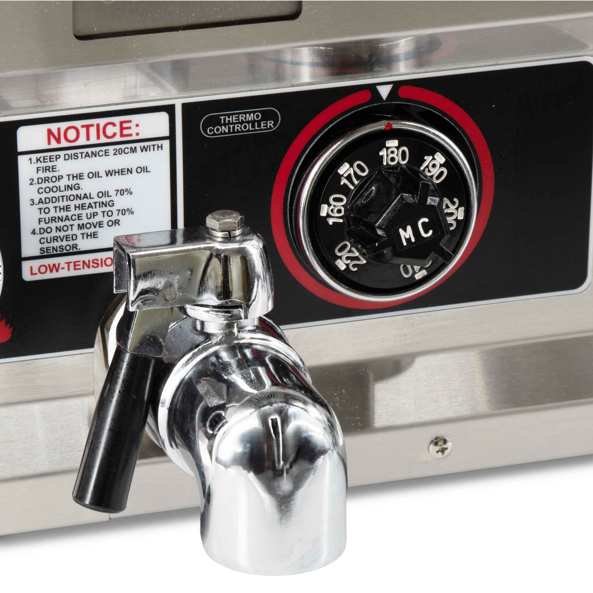 Omdat niet al je producten op dezelfde temperatuur gefrituurd moeten worden, kun je de temperatuur via de handige draaiknop makkelijk aanpassen. De frietpan word verwarmd met propaangas dus blijft altijd goed op temperatuur!