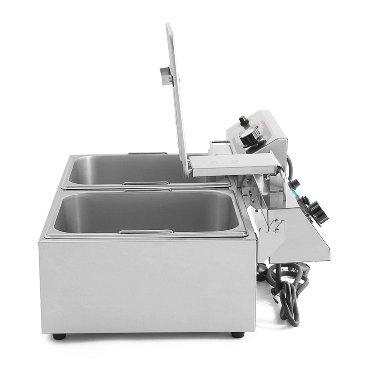 De frituur heeft 2 stekkers zodat ze afzonderlijk van elkaar gebruikt kunnen worden.