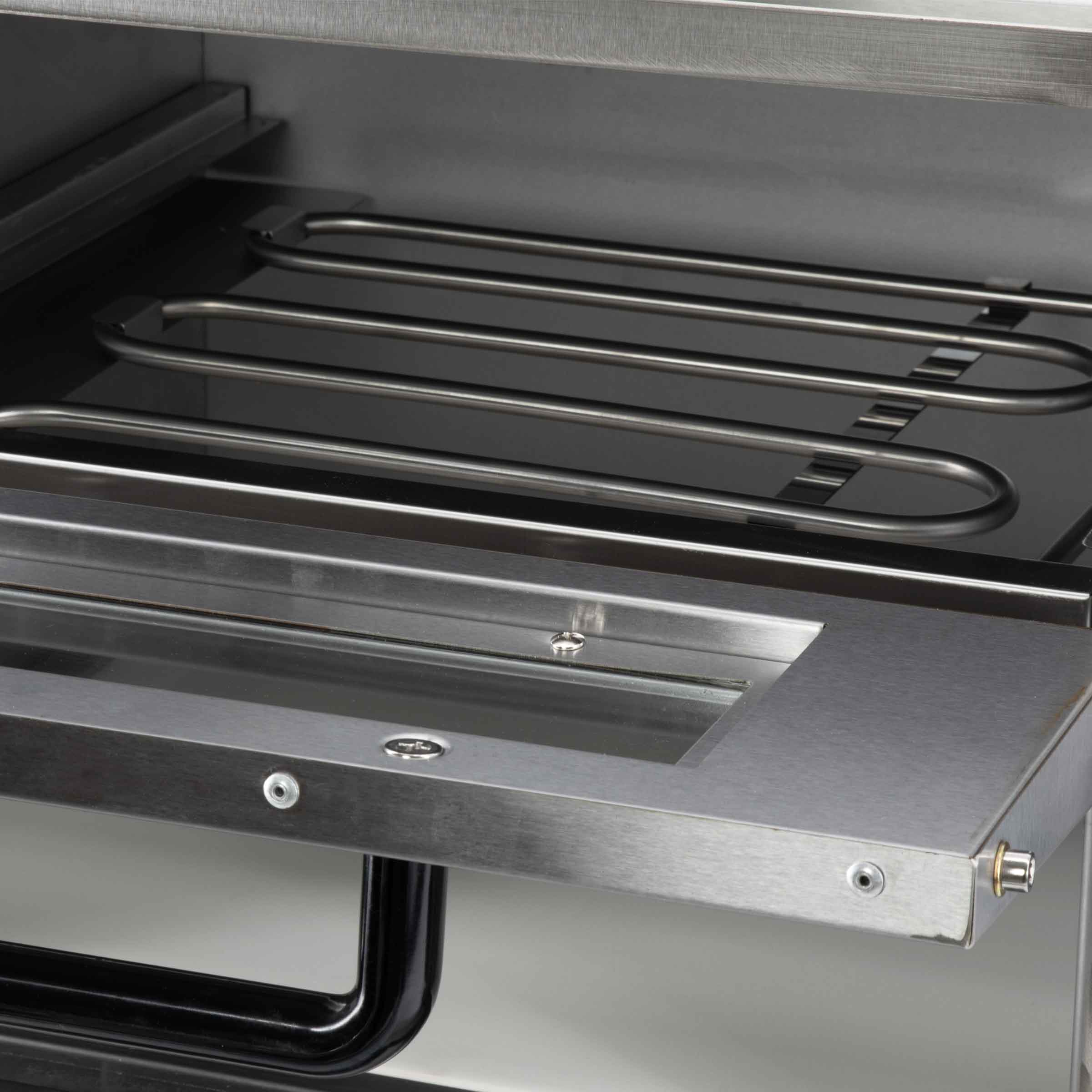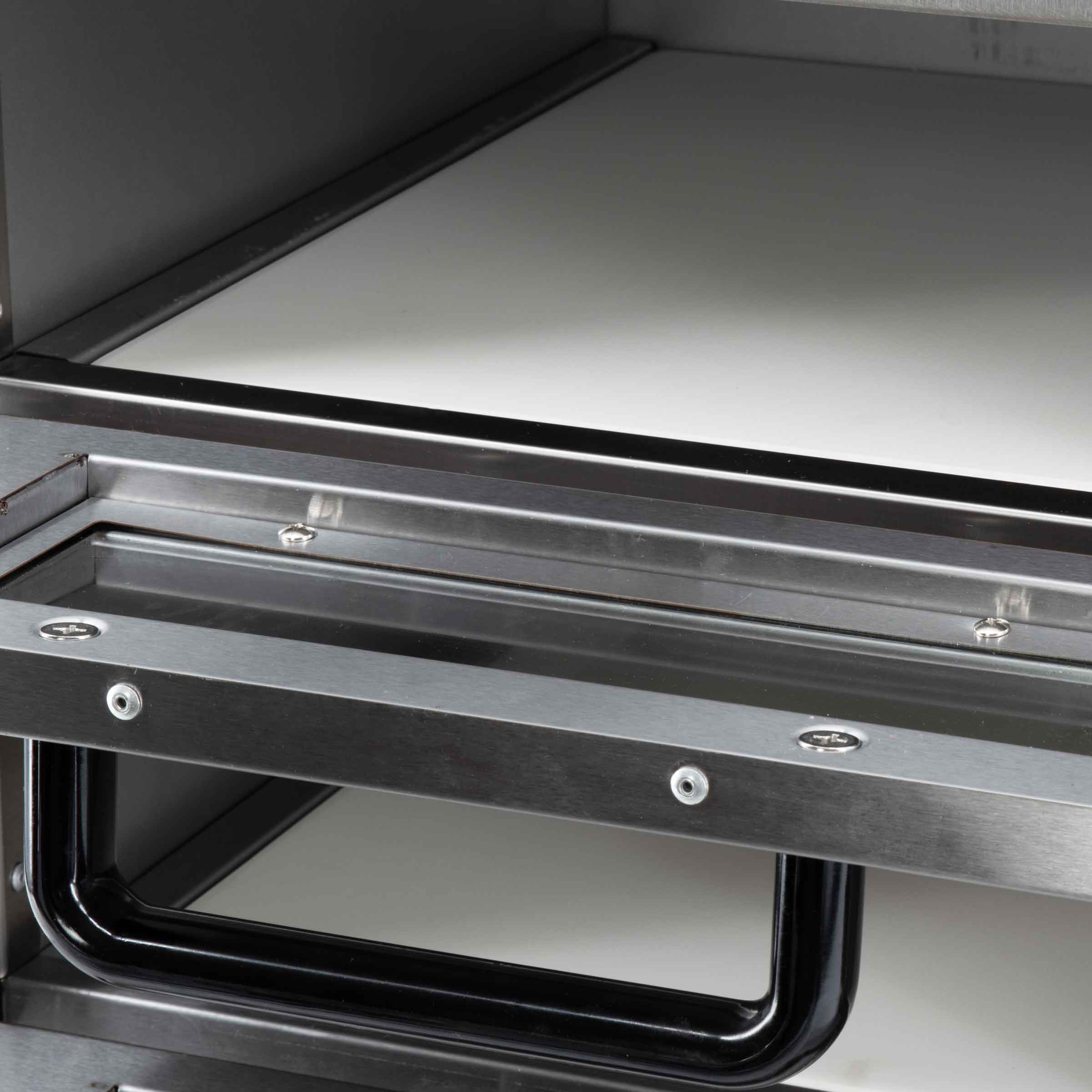De duurzame constructie en hoogwaardige materialen van onze pizza oven zorgen voor een langdurige prestatie en betrouwbaarheid, zelfs bij intensief gebruik. Het gebruiksvriendelijke bedieningspaneel maakt het eenvoudig om de oven in te stellen en te bedienen, terwijl de interne verlichting zorgt voor een visuele controle van het bakproces.