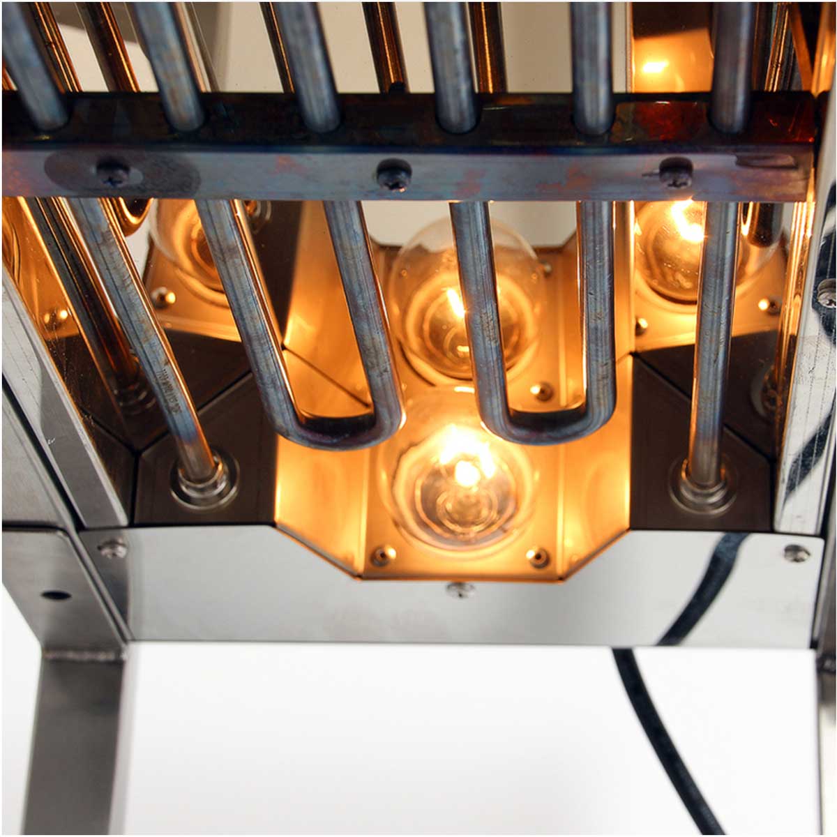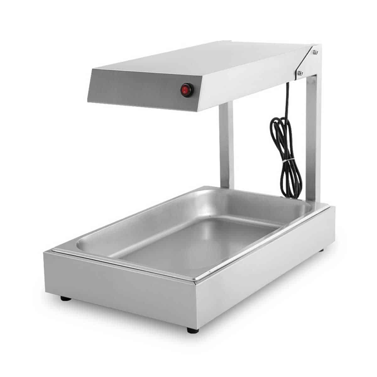 Deze frietwarmer werkt door middel van een verwarmingselement die in de bovenkant van het apparaat is gemonteerd. Het verwarmingselement zorgt ervoor dat de frietjes op de juiste temperatuur blijven en tegelijkertijd zorgt de lamp er voor dat je altijd snel en overzichtelijk kunt zien hoeveel er nog in de bak zit.