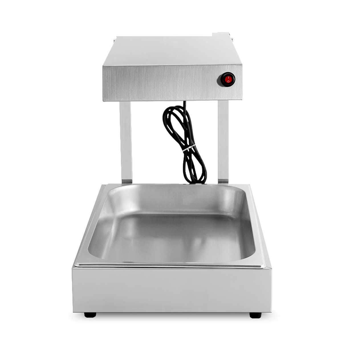De bak van de frietverwarmer heeft een maat van 1/1 gastronorm en is makkelijk te verwijderen, het aanvullen is dus makkelijk net zoals het schoonmaken.