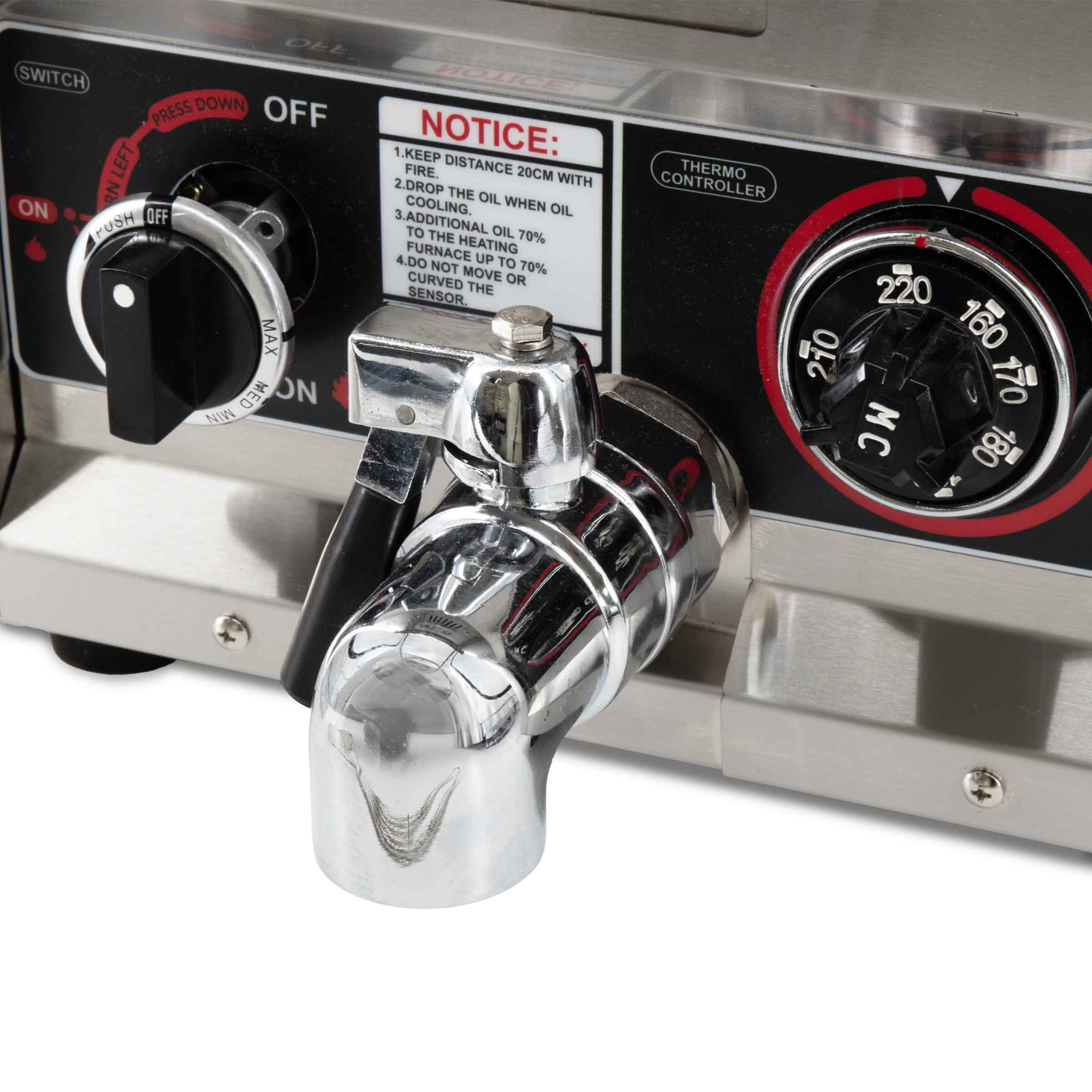 Omdat niet al je producten op dezelfde temperatuur gefrituurd moeten worden, kun je de temperatuur via de handige draaiknop makkelijk aanpassen. De frietpan word verwarmd met propaangas dus blijft altijd goed op temperatuur!
