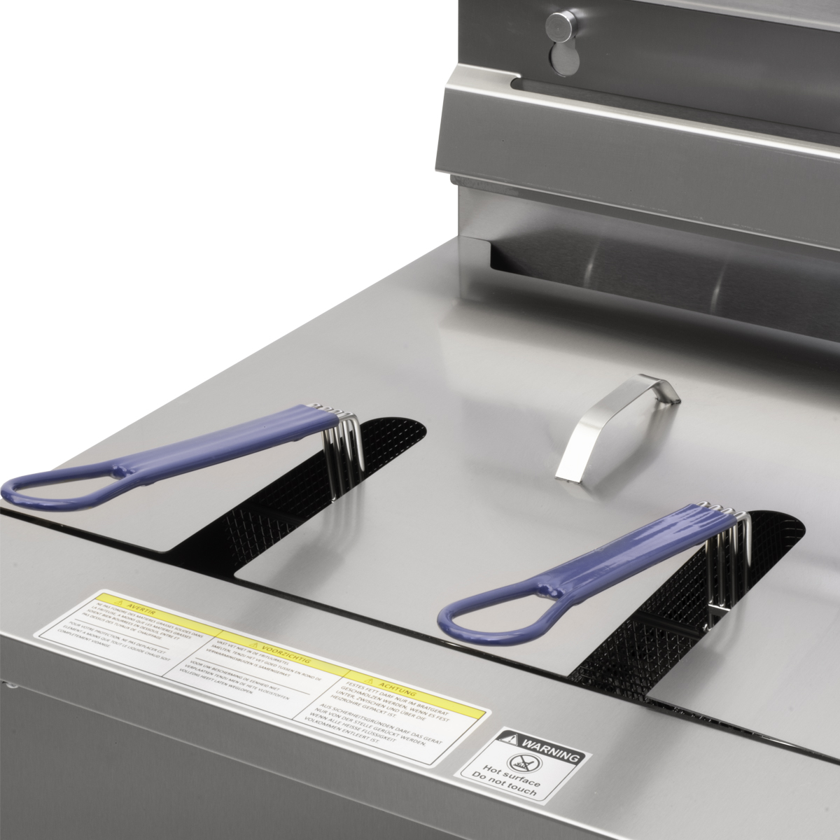 De friteuse is gemaakt van hoogwaardige materialen en is ontworpen om lang mee te gaan. De friteuse is voorzien van twee stevige en grote manden met cool touch handgrepen, dit zorgt er voor dat je veilig kunt frituren en de manden een lange levensduur hebben.