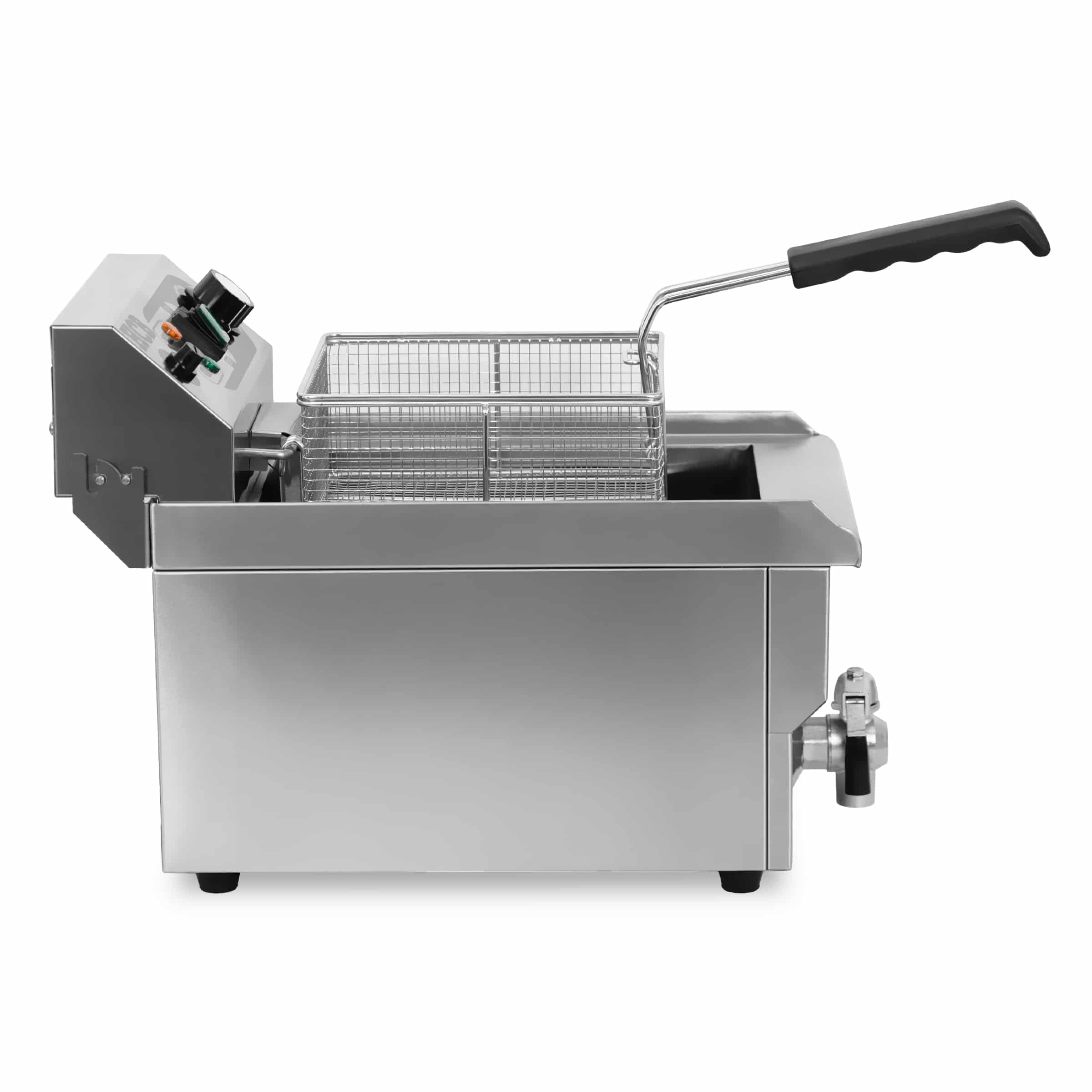Deze friteuse met een inhoud van 8,5 liter is uitermate geschikt voor de professionele keuken. Ideaal geschikt voor het frituren grotere hoeveelheden in een keer, De frietpan is perfect geschikt om verschillende soorten voedsel te frituren zoals verse frites, groente, snacks. Het schoonmaken is een makkelijk karwij, alle onderdelen zijn makkelijk te verwijderen en doordat alles van rvs is makkelijk te reinigen.