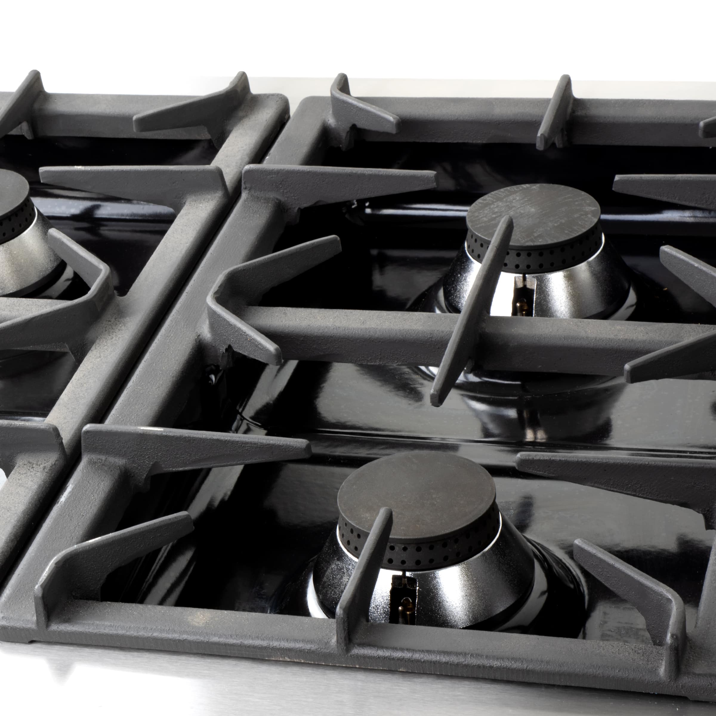 Het fornuis is uitgerust met stevige gietijzeren roosters die zorgen voor een stabiele ondergrond voor je kookgerei en zijn gemakkelijk in onderhoud.