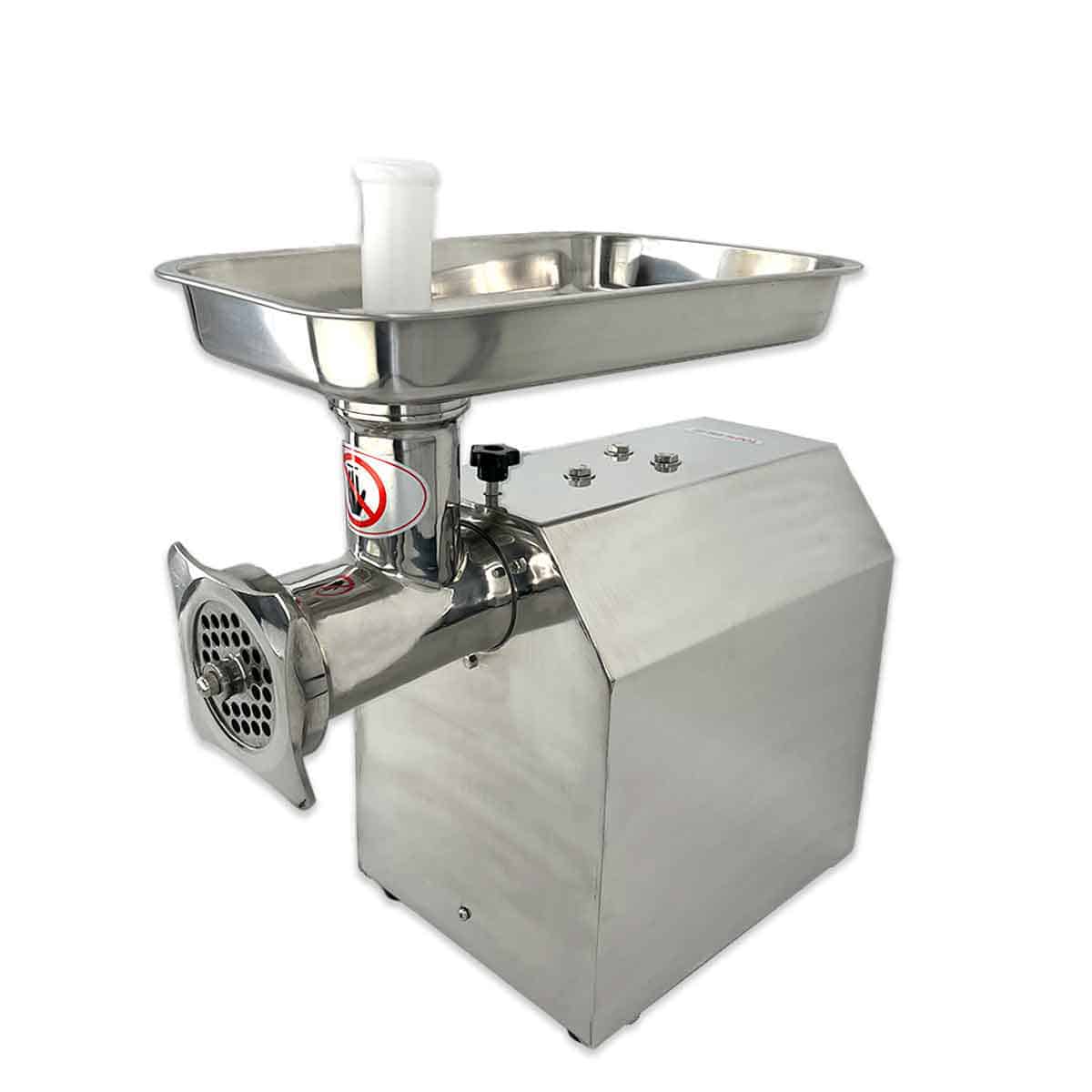 Onze gehaktmolen is uitgerust met een krachtige motor en 2 maalschijven. Hierdoor kunt u gemakkelijk verschillende soorten vlees malen en de consistentie aanpassen aan uw wensen. Bovendien is de gehaktmolen zeer gemakkelijk te gebruiken, Met een duidelijke knop aan de zijkant kunt u de molen aan en uit zetten. Om veilig te kunnen werken word er een stamper mee geleverd zodat u nooit met uw handen in de buurt van het mes komt.