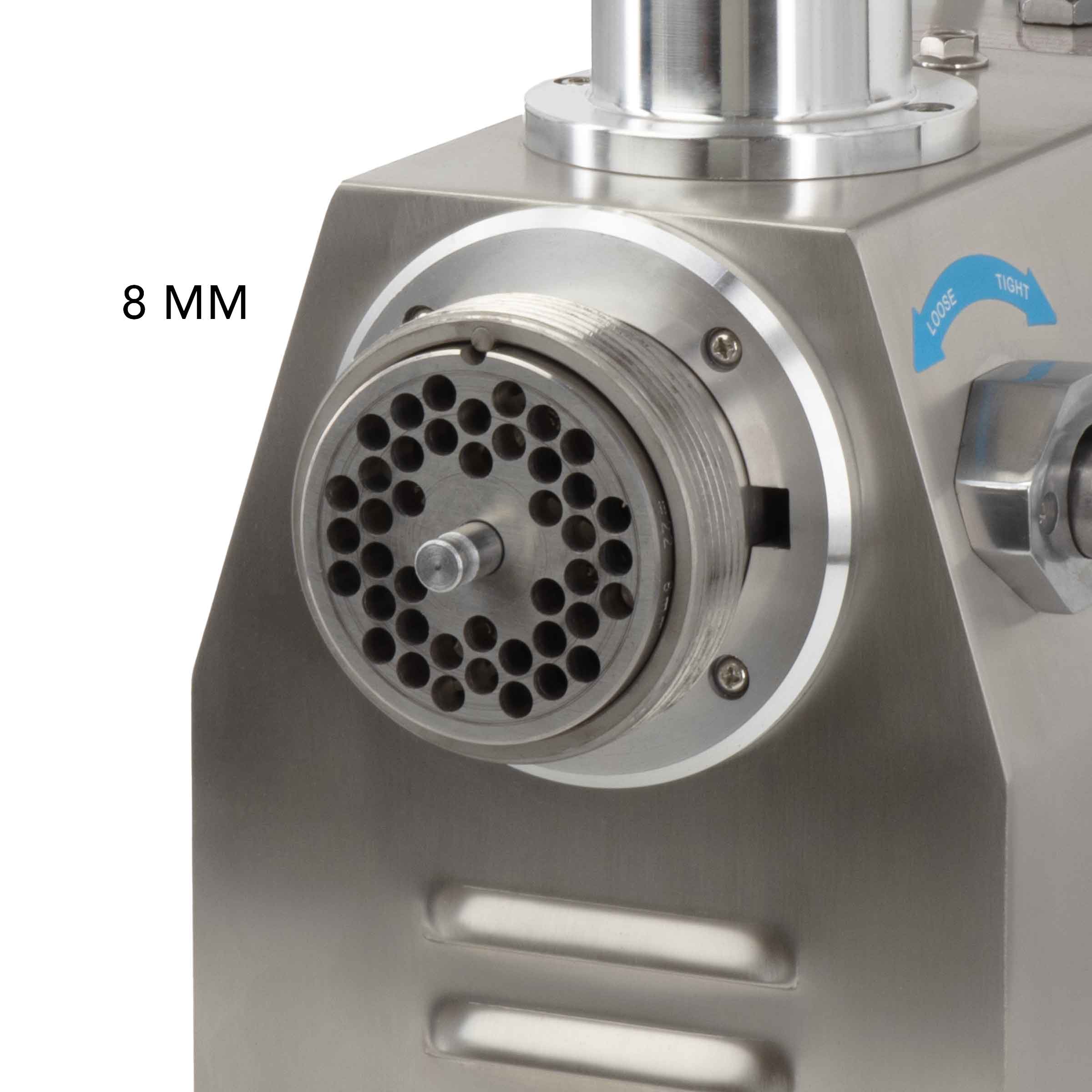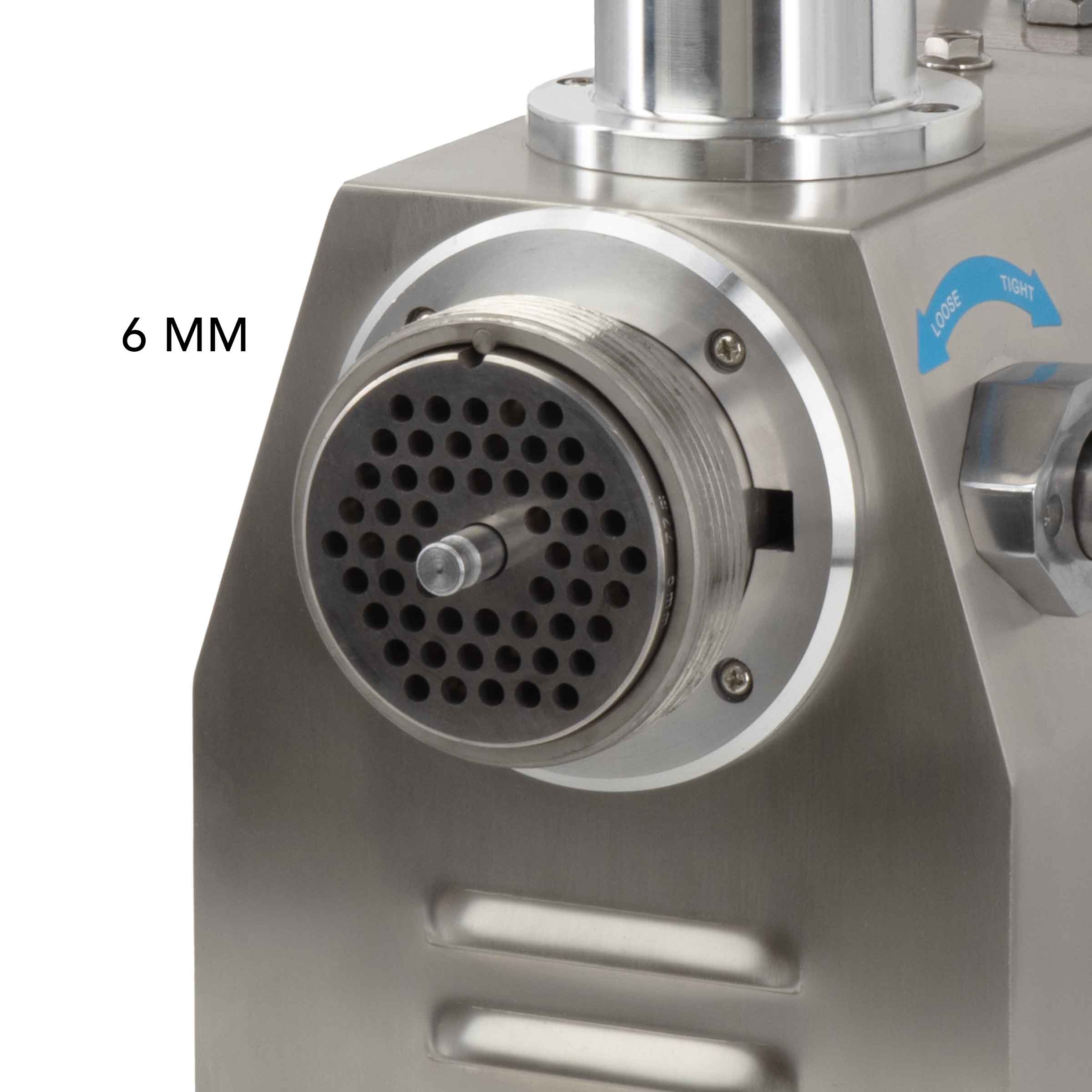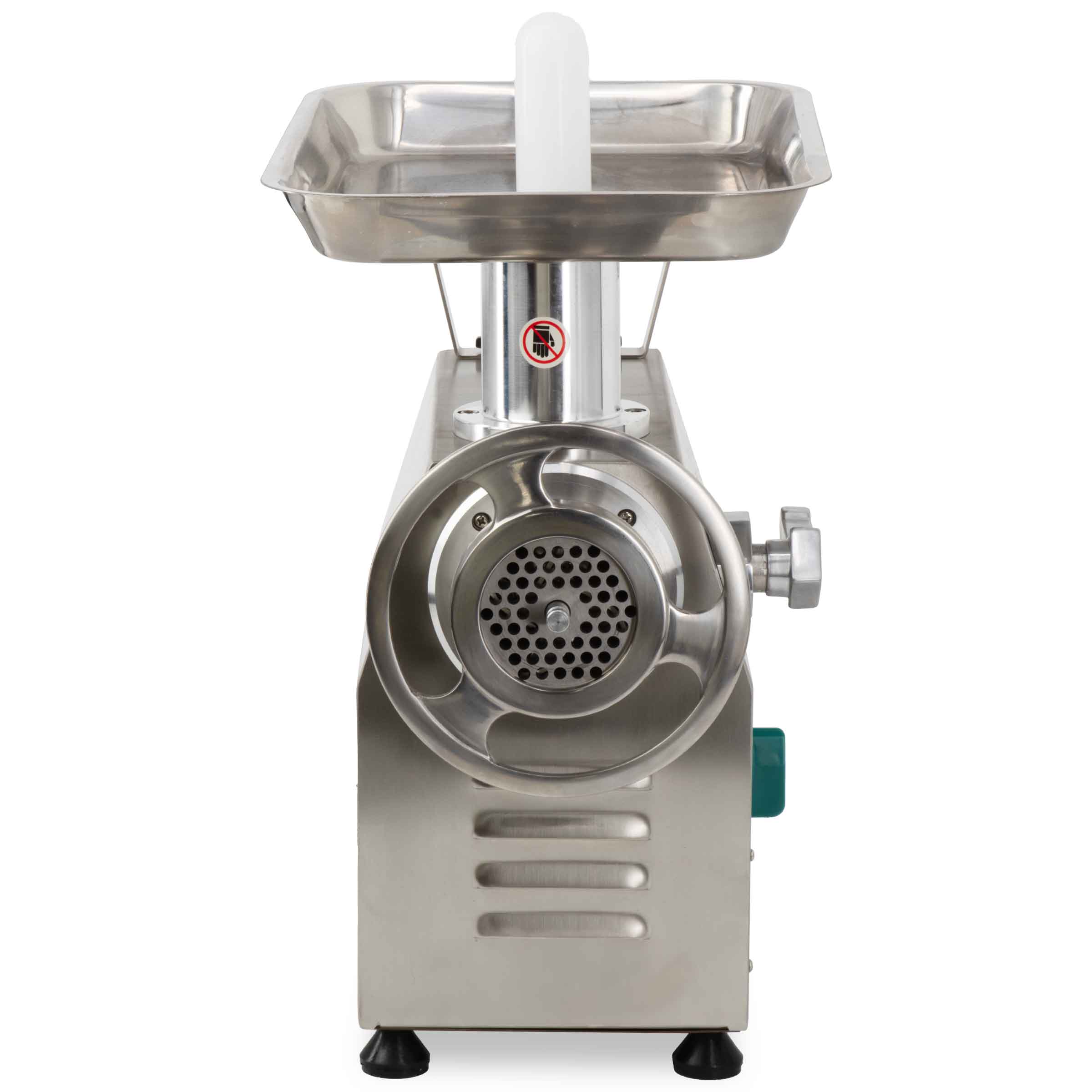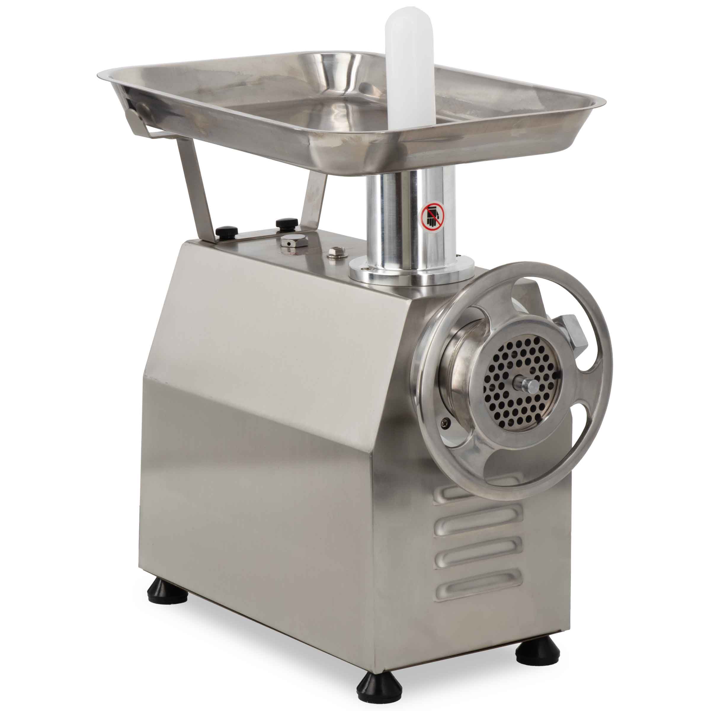 Veelzijdige maalopties: De gehaktmolen wordt geleverd met twee platen (6 mm en 8 mm) en twee messen, waardoor je flexibel bent in het kiezen van de gewenste maalgrootte voor je vlees. De plaatmaat 22 biedt voldoende capaciteit voor grote hoeveelheden vlees, terwijl de machine compact genoeg blijft om in elke professionele keuken te passen.
