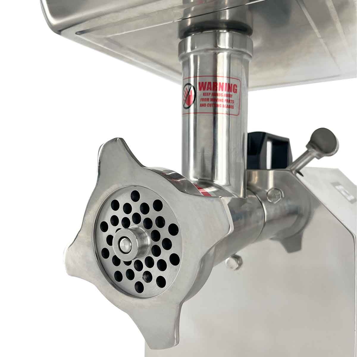 Onze gehaktmolen is uitgerust met een krachtige motor en 2 maten maalschijven. Hierdoor kunt u gemakkelijk verschillende soorten vlees malen en de consistentie aanpassen aan uw wensen. Bovendien is de gehaktmolen zeer gemakkelijk te gebruiken, Met een duidelijke knop aan de zijkant kunt u de molen aan en uit zetten. Om veilig te kunnen werken word er een stamper mee geleverd zodat u nooit met uw handen in de buurt van het mes komt.