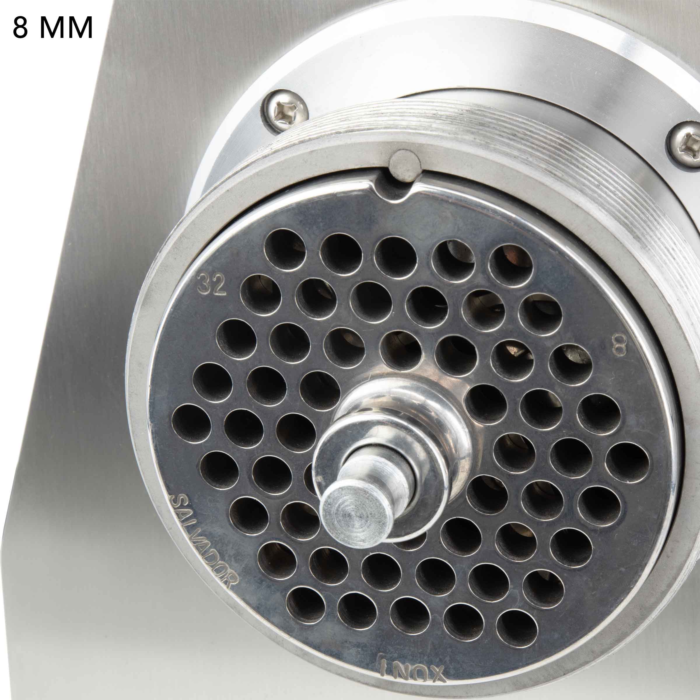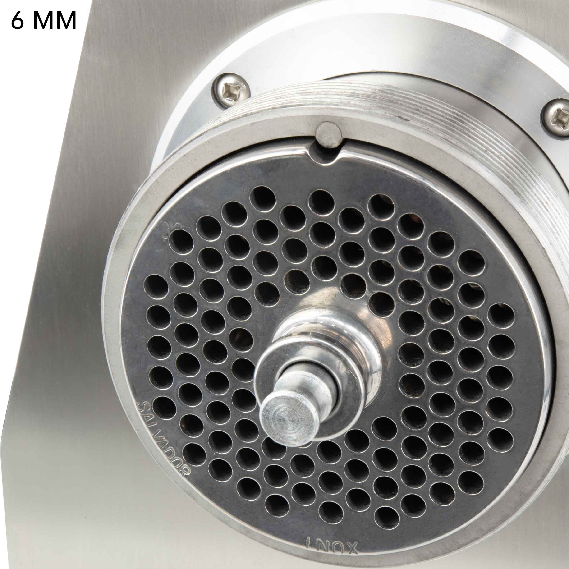 Grote capaciteit en flexibiliteit: De gehaktmolen wordt geleverd met twee platen (6 mm en 8 mm) en twee messen, zodat je het vlees naar de gewenste textuur kunt malen. De plaatmaat 32 maakt het mogelijk om grote hoeveelheden vlees te verwerken zonder onderbrekingen, waardoor het apparaat ideaal is voor intensieve gebruiksomgevingen.