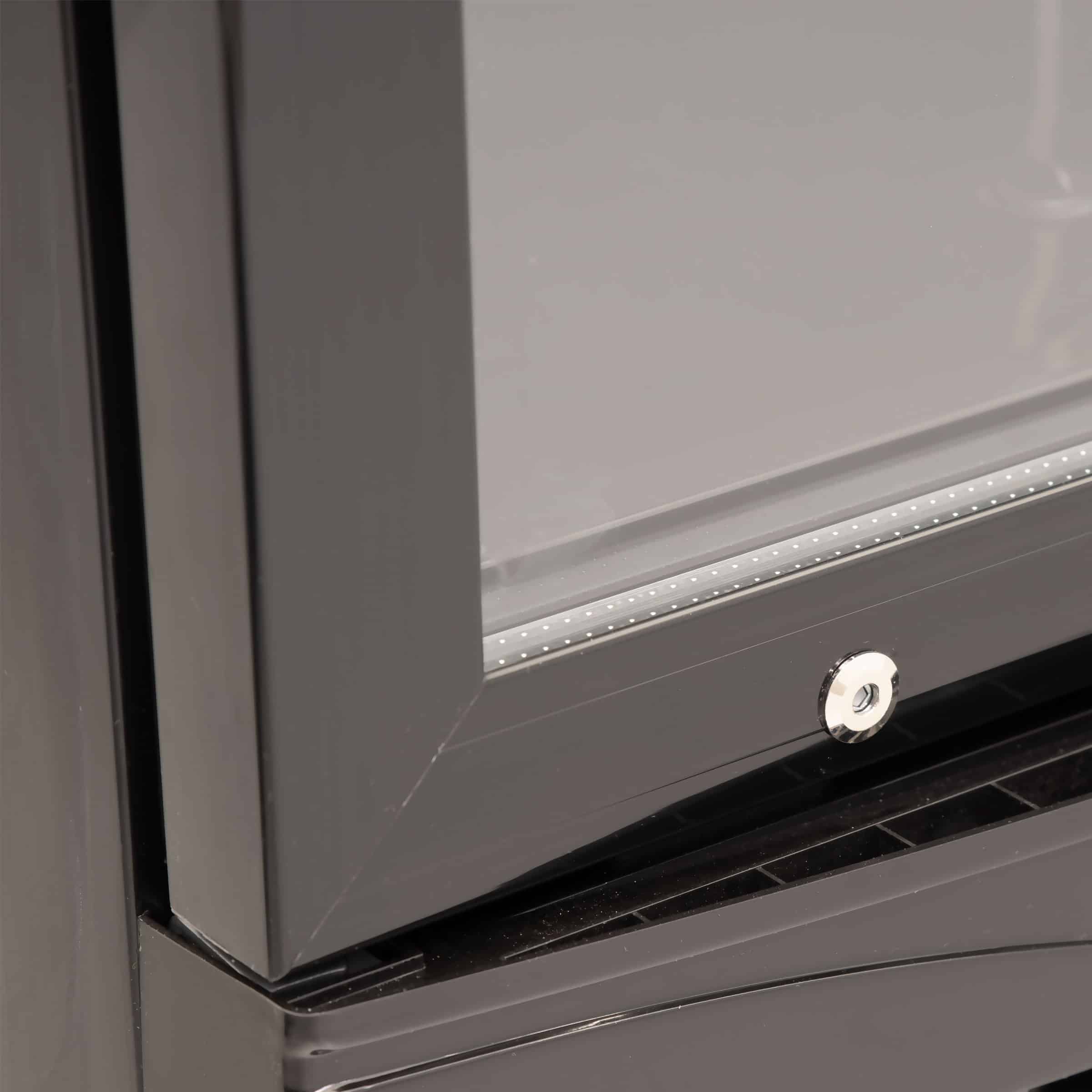 Deze koelkast heeft een strak design en is voorzien van geïntegreerde binnenverlichting, waardoor uw producten altijd goed zichtbaar zijn voor uw klanten. De temperatuur is eenvoudig te regelen en de koelkast is voorzien van een energiezuinige compressor die zorgt voor een optimale koeling.