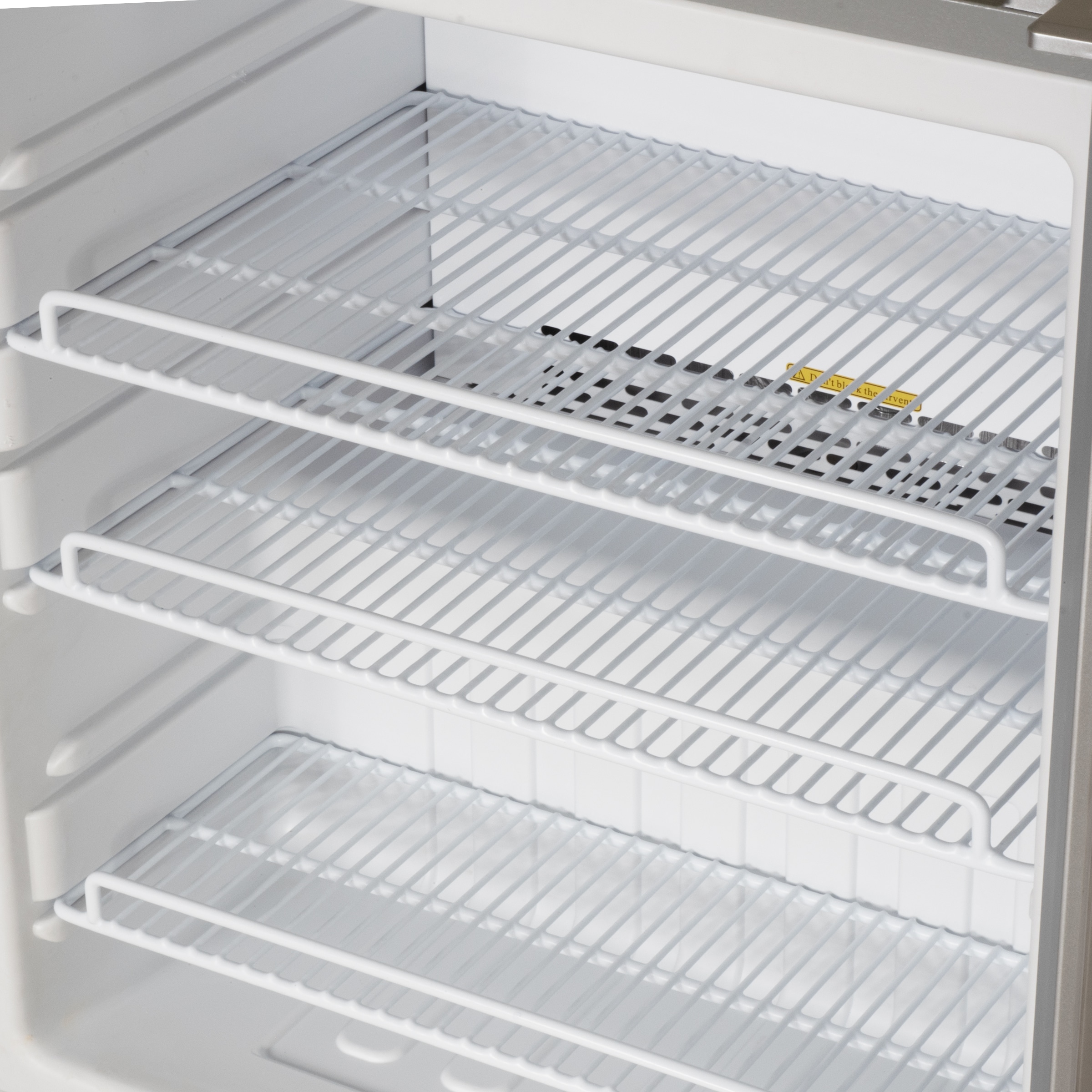 Deze koelkast heeft een strak design en is voorzien van geïntegreerde binnenverlichting, waardoor uw producten altijd goed zichtbaar zijn voor uw klanten. De temperatuur is eenvoudig te regelen en de koelkast is voorzien van een energiezuinige compressor die zorgt voor een optimale koeling.