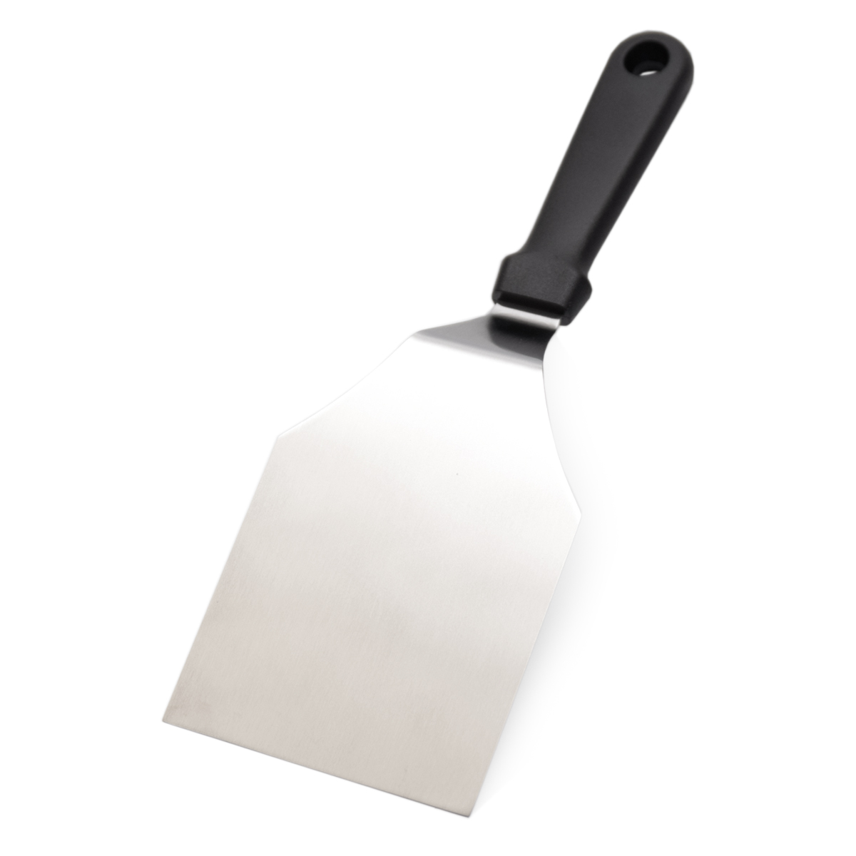 In professionele keukens en snackconcepten is dit type turner een echte alleskunner: je gebruikt ’m om hamburgers te flippen, maar ook om producten te portioneren, te schuiven of om de bakplaat efficiënt schoon te “trekken” tijdens het werken. Het roestvaststalen deel is gemaakt voor intensief gebruik en het kunststof handvat ligt prettig in de hand, zodat je gecontroleerd kunt werken ook wanneer het druk is.