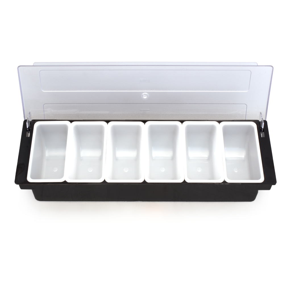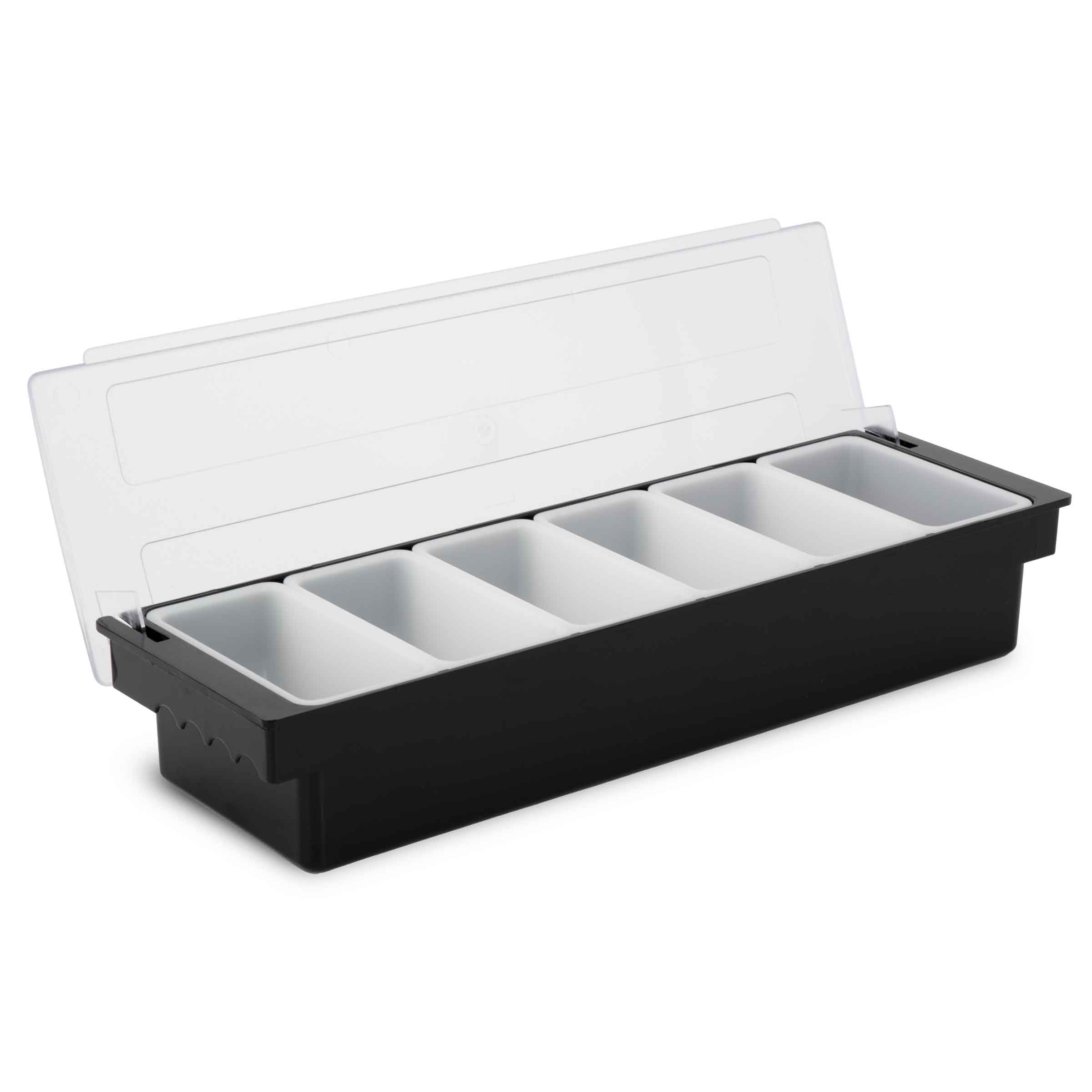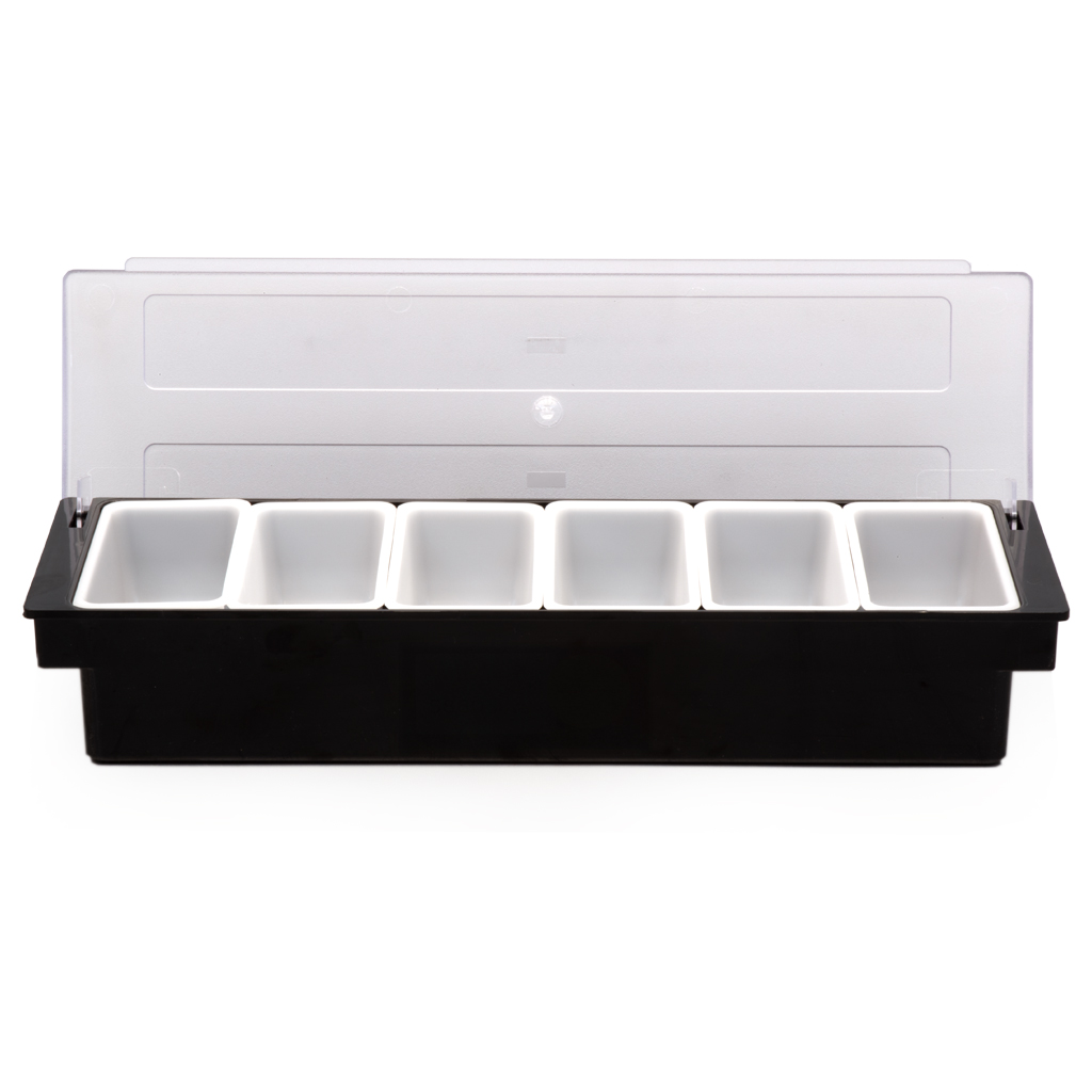 Deze praktische garneerunit is ideaal voor het bewaren van ingrediënten of toppings, zodat ze altijd binnen handbereik zijn bij het serveren van drankjes of cocktails.