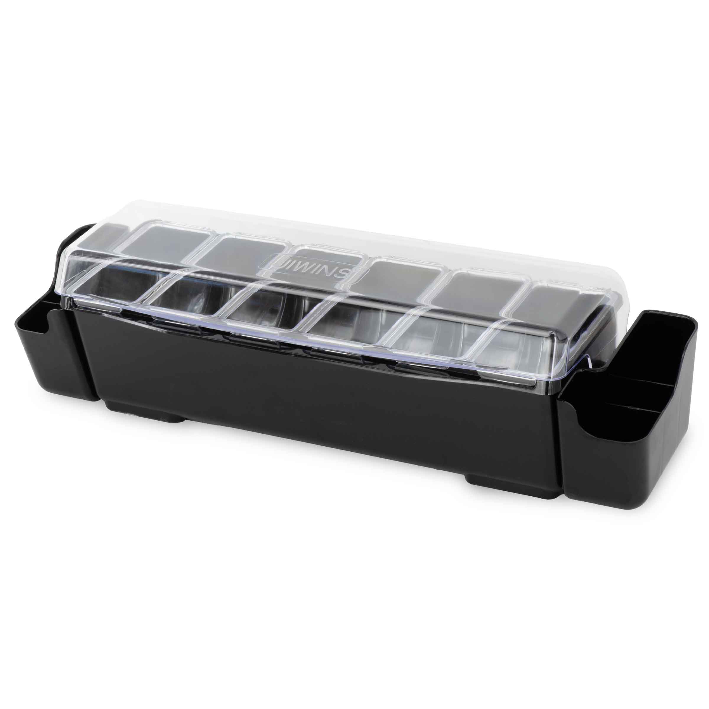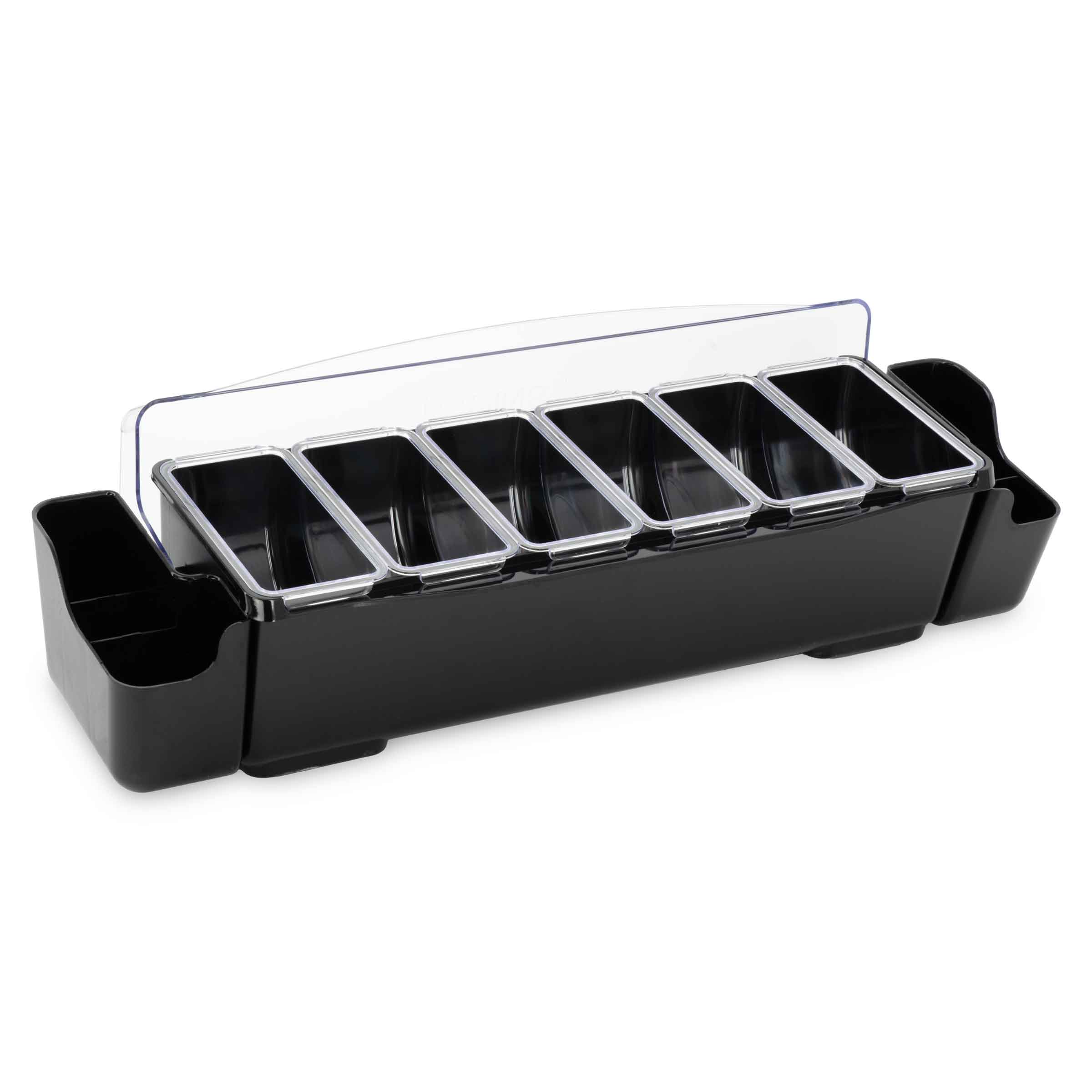 Deze veelzijdige ingrediëntenhouder is ideaal voor het bewaren en organiseren van diverse toppings en ingrediënten, bijvoorbeeld bij het bereiden van cocktails of gerechten. Door de compacte en gebruiksvriendelijke opzet houdt u alle benodigdheden overzichtelijk bij de hand.