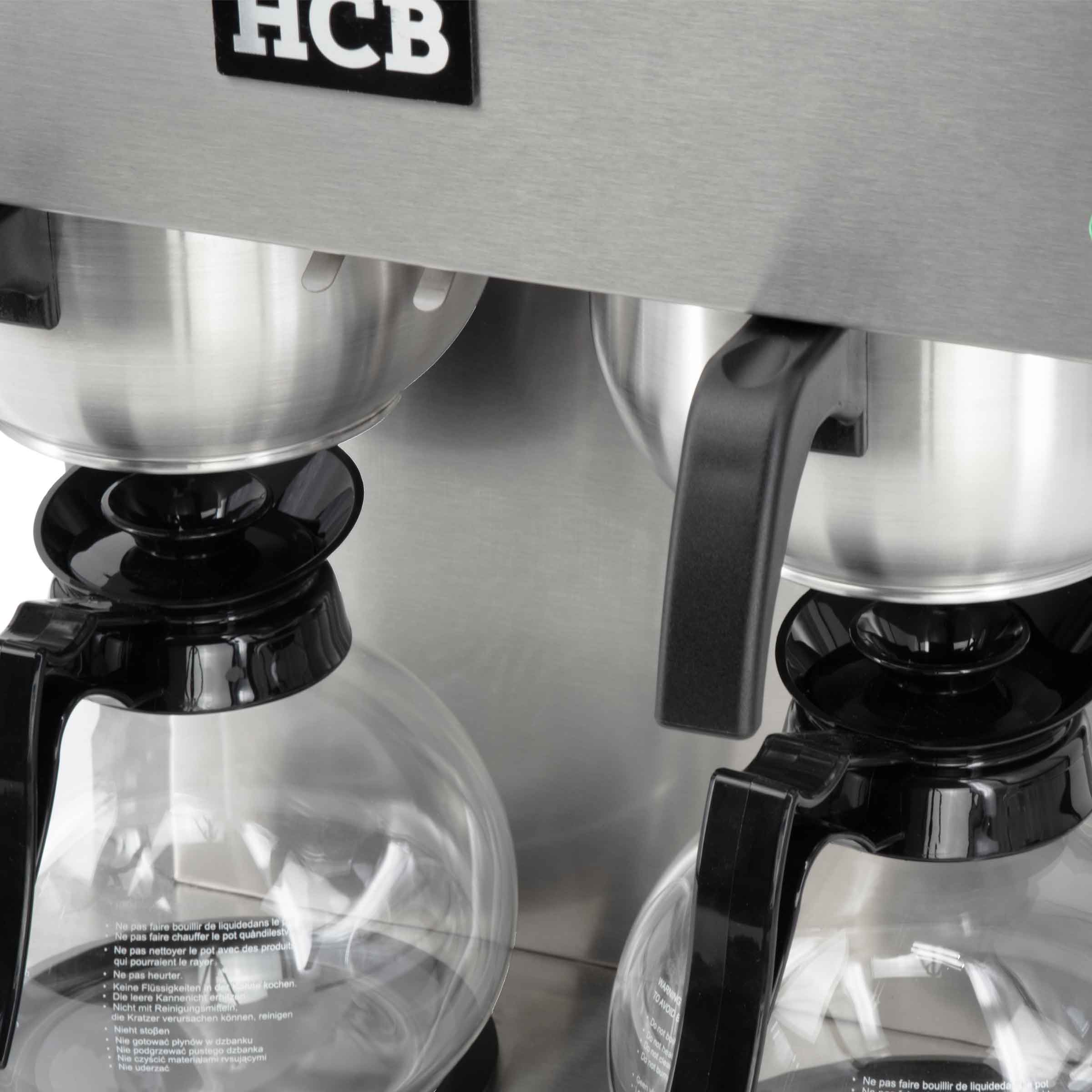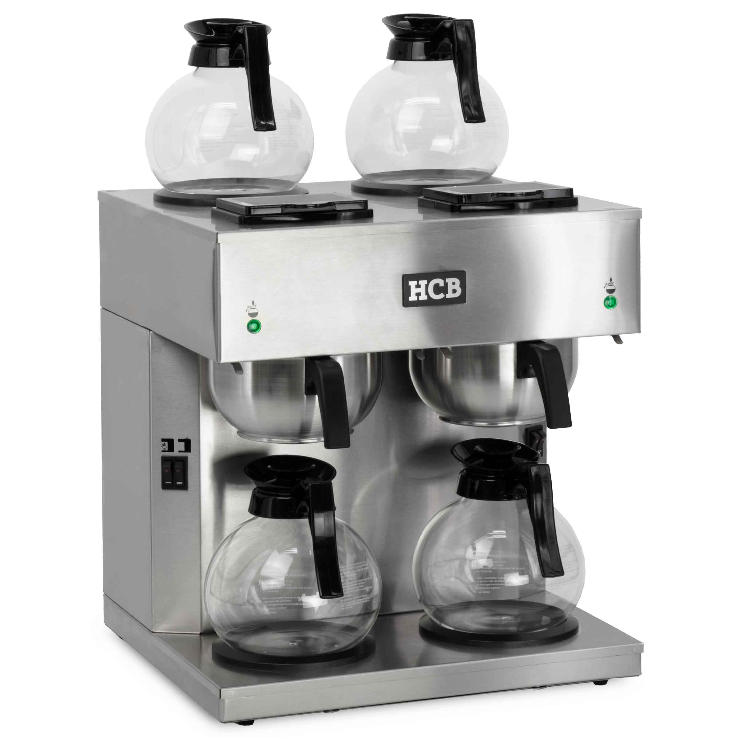 Lekkere koffie zet je met ons koffiezet apparaat van HCB, dit apparaat is ontworpen met 4 verwarmingsplaten en 2 koffiefilters zodat je makkelijk 2 potten tegelijk kan zetten.