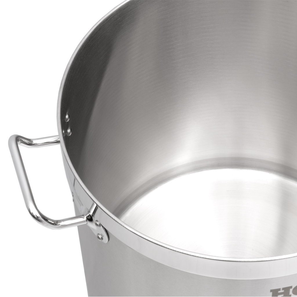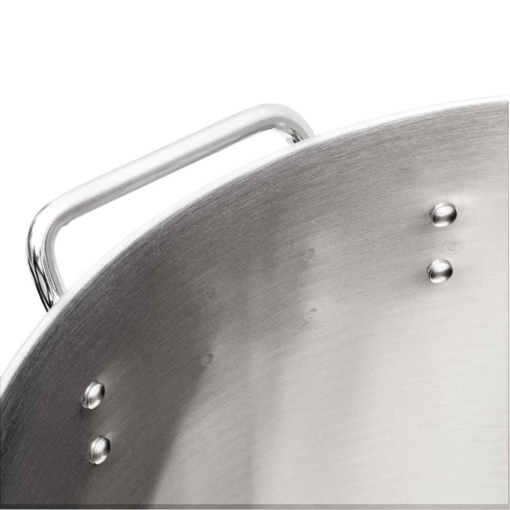 De stevige, ergonomisch gevormde handvatten bieden een comfortabele en veilige grip, zelfs wanneer de pan volledig gevuld is met 20 liter heerlijke soep, stamppot of iets anders. Dit is essentieel bij een pan van dit formaat, waar gewicht en controle belangrijk zijn voor veilig koken. De handvatten zijn stevig bevestigd aan de panwand en blijven koel genoeg om veilig vast te pakken tijdens het koken.
