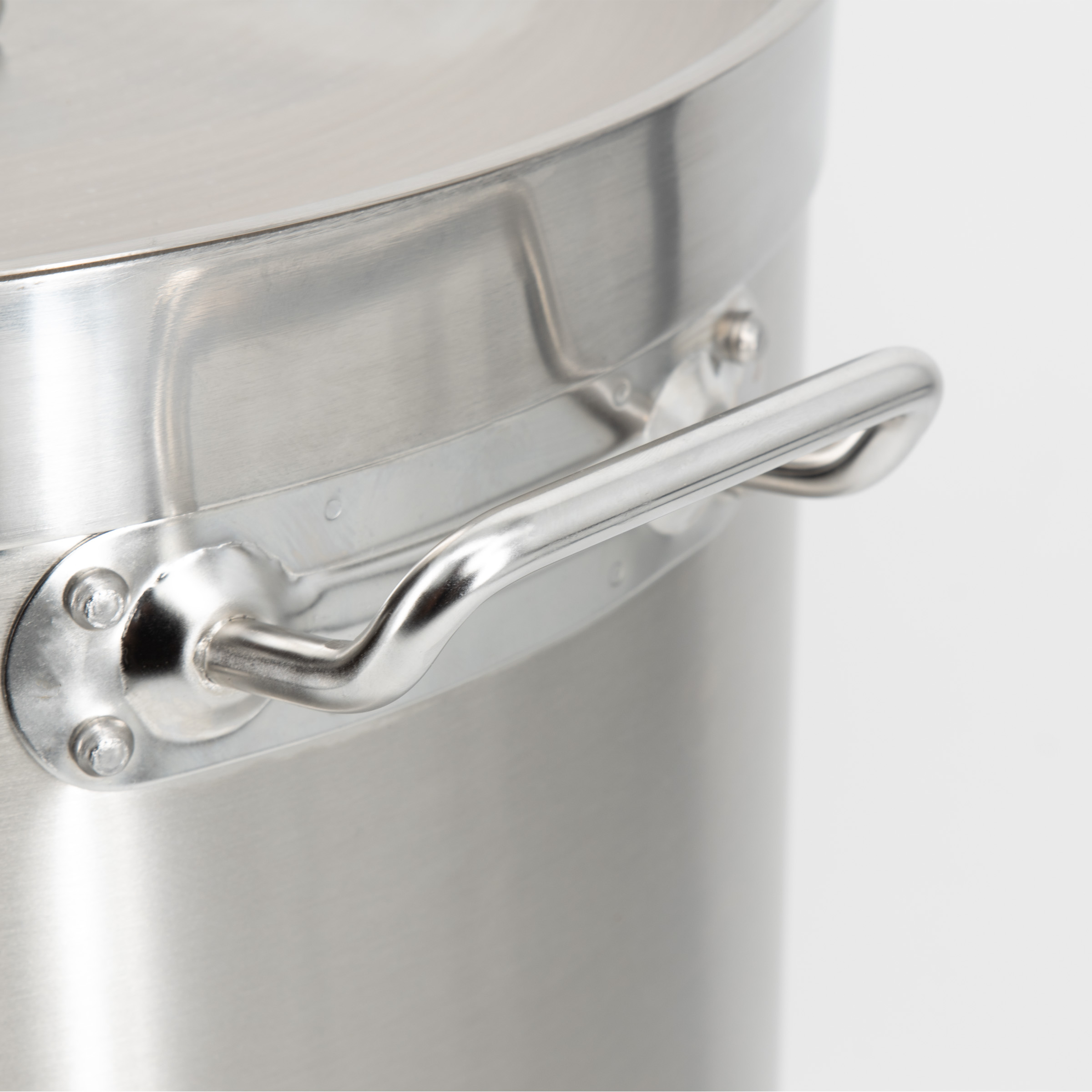 De stevige, ergonomisch gevormde handvatten bieden een comfortabele en veilige grip, zelfs wanneer de pan volledig gevuld is met 32 liter heerlijke soep, stamppot of iets anders. Dit is essentieel bij een pan van dit formaat, waar gewicht en controle belangrijk zijn voor veilig koken. De handvatten zijn stevig bevestigd aan de panwand en blijven koel genoeg om veilig vast te pakken tijdens het koken.