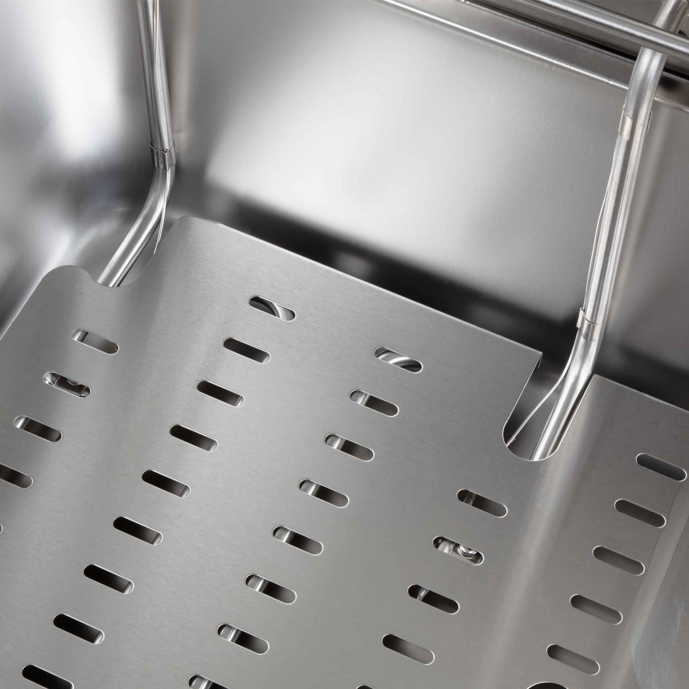 Deze friteuse met een inhoud van 14 liter is uitermate geschikt voor de professionele keuken. Ideaal geschikt voor het frituren grotere hoeveelheden in een keer, De frietpan is perfect geschikt om verschillende soorten voedsel te frituren zoals verse frites, groente, vis, oliebollen en snacks. Het schoonmaken is een makkelijk karwij, alle onderdelen zijn makkelijk te verwijderen en doordat alles van rvs is makkelijk te reinigen.