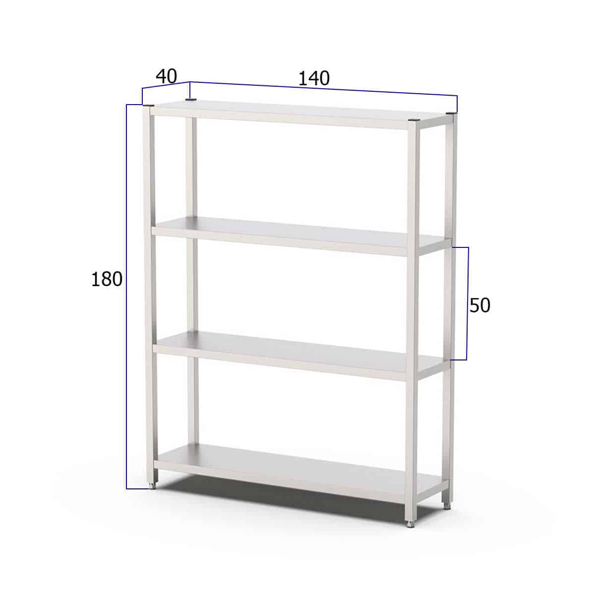 HCB Opbergrek – stelling – 140 x 40 x 180 cm – RVS