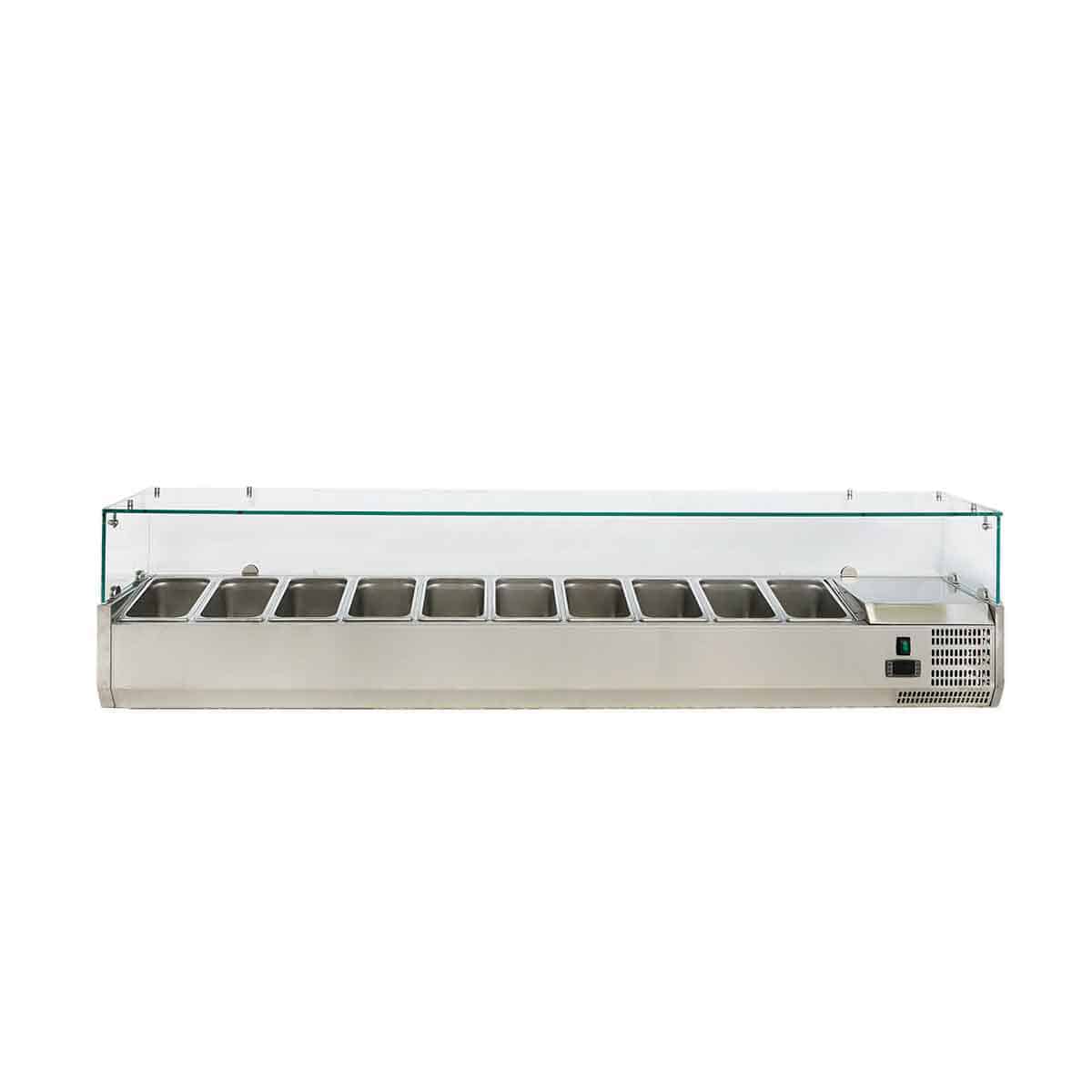 HCB Opzetkoelvitrine – Saladière met glas -10 x 1/4 GN – 200 cm – RVS