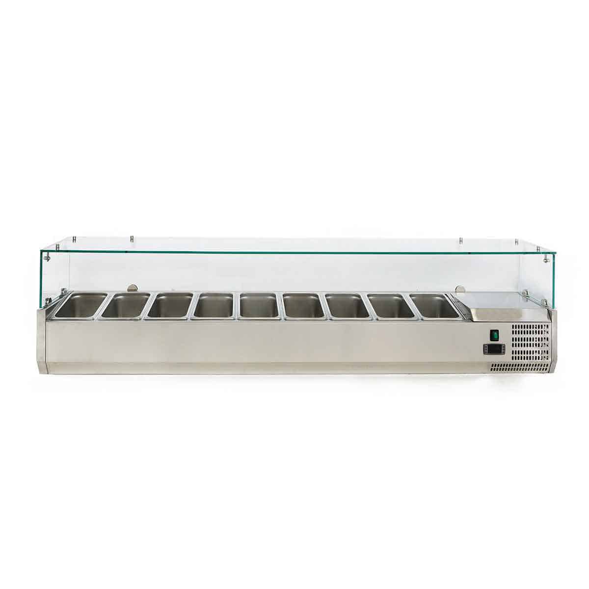 HCB Opzetkoelvitrine – Saladière met glas – 9 x 1/4 GN – 180 cm – RVS