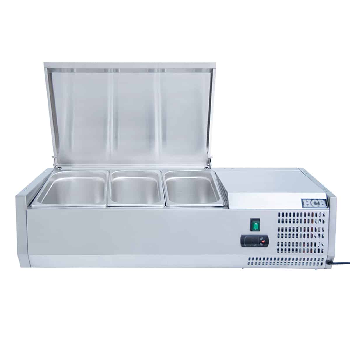 HCB Opzetkoelvitrine – Saladière met klep – 2 x 1/3 en 1 x 1/2 GN – 100 cm – RVS