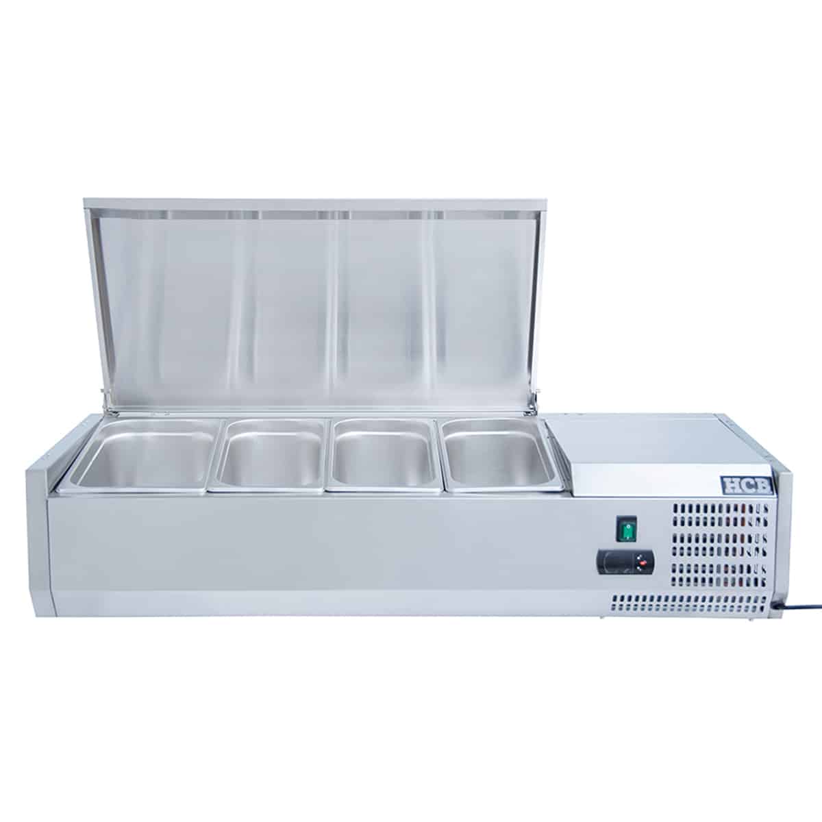 HCB Opzetkoelvitrine – Saladière met klep – 3 x 1/3 en 1 x 1/2 GN – 120 cm – RVS