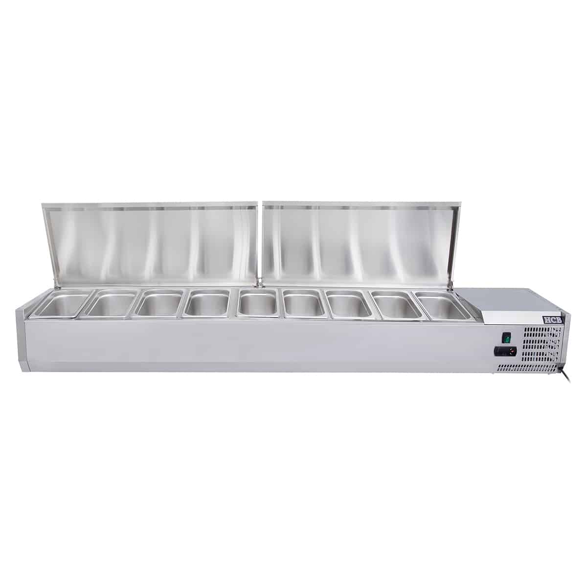 HCB Opzetkoelvitrine – Saladière met klep – 9 x 1/4 GN – 180 cm – RVS